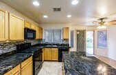 1 Story home with 3 Bedrooms, 2 bathrooms, and 2 car garage. Brand new carpet. Laminate in primary bedroom. All appliances included: Refrigerator, Stove, Microwave, Dishwasher, Washer, and Dryer. Kitchen includes granite countertops, tile backsplash and flooring. Backyard includes covered patio and grass. Front yard grass will be removed. Nearby shopping restaurants and more. Tenant required to purchase renter's insurance. A must see. Won't last.