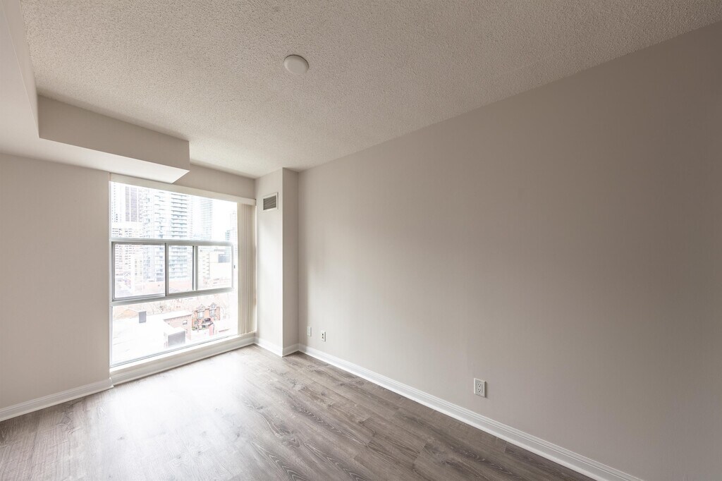 Bright 1 bedroom unit in the heart of the Bay St corridor. Floor to ceiling windows, spacious kitchen with stainless steel appliances, beautiful flooring throughout, and a generously sized master bedroom with large walk-in closet. Amazing building amenities including a large gym, party room, and a rooftop patio with views of the entire city. Minutes away from TTC, shops, and restaurants. Short walk to U Of T, Ryerson, Eaton Centre & much more.Extras: stainless steel – fridge, stove, dishwasher, built-in microwave. Stacked washer dryer. All utilities included! No parking, no locker.
