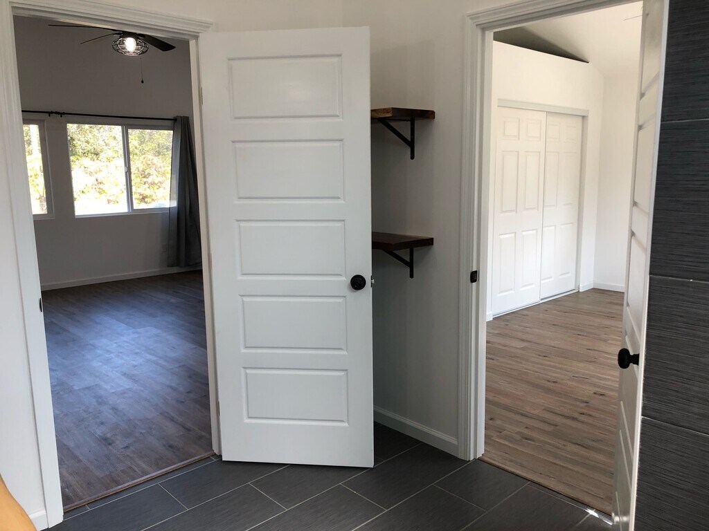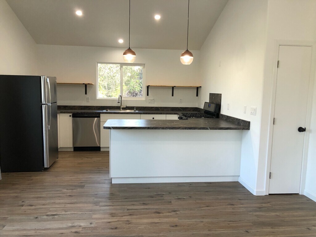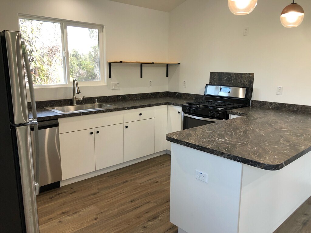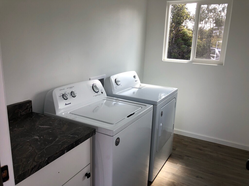 This darling home is located in Royal Hawaiian Estates close to Volcano Village. Gas stove and on-demand water heater help keep the HELCO bill in check. Open concept kitchen sports a dishwasher, lots of counterspace, and country shelves. A stellar bathroom flashes a fancy step-in shower and dual sinks on a beautiful counter. Quaint front porch might catch a glimpse of Mauna Kea. Ceiling fans, laminate floors, and a separate laundry room with machines complete the package. Tenant pays all utilities; water is catchment. An Outdoor Only pet may be considered with a meet-n-greet and a Pet Deposit. A Hilo Bay Realty application must be submitted prior to scheduling a showing, an online version is found at hbr dot managebuilding.