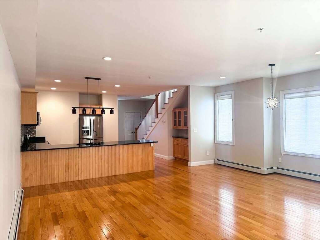 Welcome to Abbey Road, Brunswick! This luxury long term unit is available for rent now! This end unit is extremely attractive & boasts expansive large windows and glass doors that flood the space with natural light and seamlessly blend indoor and outdoor living. There are 3 decks and a porch—two on the main level, one on the second floor, and another on the third floor offering stunning views of downtown. We adore the open-concept floor plan which features gleaming hardwood floors and a very large kitchen that flows into the dining/ living areas. The primary suite is a true sanctuary, featuring a massive walk-in closet and an en-suite bathroom. There are three additional beautiful bedrooms on the second and third floors, plenty of room for guests, office space, or gym. Enjoy year-round comfort with three heat pumps that also do A/C. This rental includes a heated garage with two parking spots. The epic location of this unit is the shining star of this listing, where you'll be within a VERY short distance of Bowdoin College, the train station, and the galleries, cinemas and farmers markets of bustling downtown Brunswick. Tenant Pays Water, Sewer, Heat, Electric and Trash Removal. Application required prior to showings. We look for clean background, rental , 2.5x income and credit. One small pet considered. NO SMOKING OR VAPING ALLOWED ON SITE.