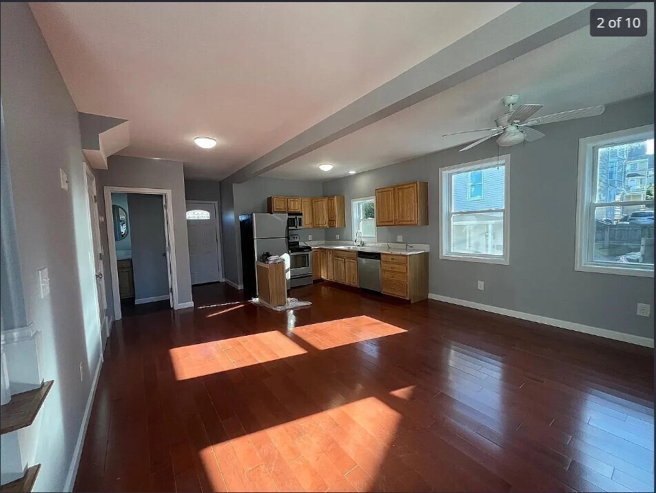 Renovated two-bedroom,1.5-bath apartment offering modern two-level living with the feel of a single home. Main level features hardwood floors,a stylish kitchen with quartz countertops,stainless-steel appliances,and a half bath. Upstairs offers two bedrooms and a full bath. Enjoy in-unit laundry,a private deck,two parking spaces,and a storage shed. Centrally located near Haverhill’s Historic Shoe District and MBTA/Amtrak transit for easy Boston access. No pets,no smoking. No broker fee. MLS# 73448653