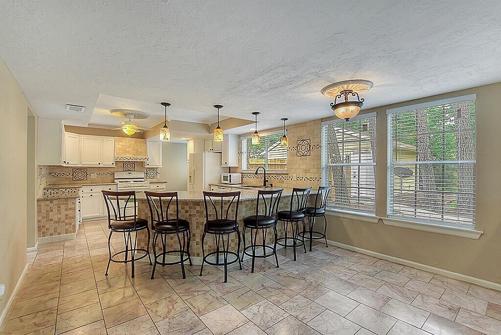 ROOMMATES and ANIMALS WELCOMED: Spacious family Home in Grogan's Mill Village in this highly sought after neighborhood in the front of The Woodlands. The home boasts attractive features such as a beautiful double wrought iron front door,Italian marble flooring throughout,a stone fireplace,and stylish fixtures. The granite kitchen includes designer tile work. Double patio doors open to a large deck and a wonderful backyard,perfect for entertaining. Upstairs,you'll find five bedrooms,including a spacious master suite with an en-suite bathroom and an attached study or nursery. The property also features fresh landscaping,two new A/C units,and is welcoming to both roommates and animals. MLS# 74516747