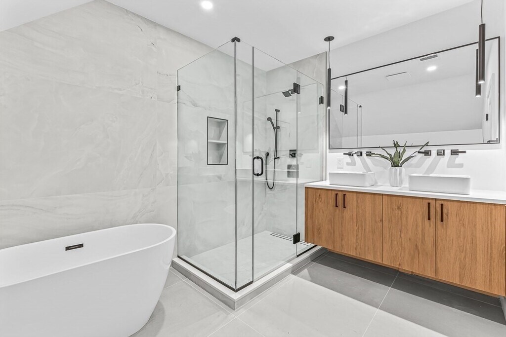 Beautifully gut-renovated 4Bed,3.5Bath Condo in Medford. This stunning condo features hardwood floors,high ceilings,and custom finishes throughout. The modern kitchen offers quartz countertops,premium appliances,and sleek details. The primary suite includes a walk-in closet,a bath with soaking tub and double vanity. Two bedrooms,a full bath,and laundry room sit on the second floor. The finished basement adds extra living space with a bedroom and full bath. Conveniently located near I-93 and just minutes from Assembly Row. MLS# 73436045