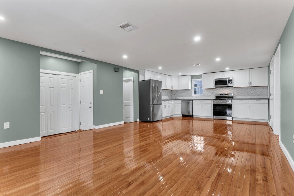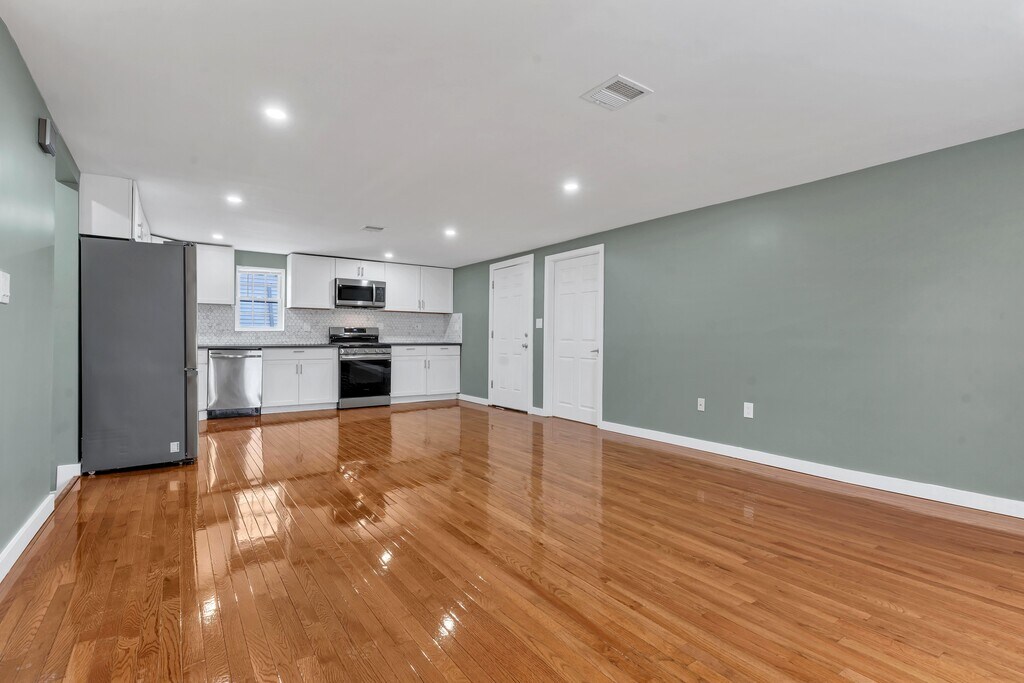This beautifully updated 3-bedroom, 2-bathroom unit offers a bright and spacious layout designed for comfortable modern living. The open living and dining area flows seamlessly into a fully renovated kitchen featuring updated cabinetry, sleek countertops, and stainless steel appliances ideal for both everyday use and entertaining. Both bathrooms have been thoughtfully updated with contemporary finishes, and the bedrooms provide generous space and natural light. Additional highlights include hardwood floors throughout, recessed lighting, efficient forced-air heating, and it includes 2 parking spaces. Washer and dryer are located in the basement and are coin-operated for added convenience. A well-maintained property with quality upgrades throughout, ready to be enjoyed. Tenant is responsible for gas and electric.
