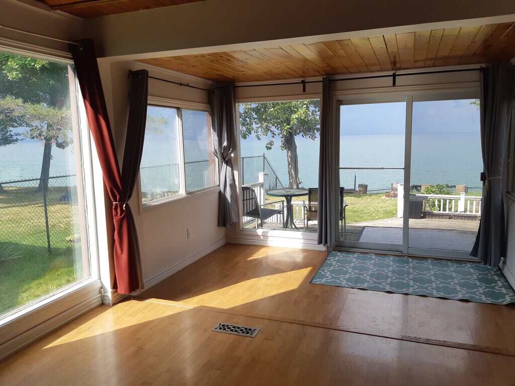 Month to month lease // Fully Furnished // Including WiFi and some utilities // ------------------------------------------------------------------------------------------------------------- Cottage in the city _Have lake Ontario in your backyard with fascinating unobstructed views of Toronto skyline, access to the lake with riparian rights. A detached unique WATERFRONT English cottage style house located in a secluded street between Fruitland and Fifty road. Easy access to QEW, Burlington or Niagara are a short drive. Fifty point conservation and Mohawk Stoney creek campus are around the corner - for all water fun activities ----------- *MAIN FLOOR: Master bedroom with a walk-in closet, another small bedroom, kitchen, 4 pieces bathroom, laundry, cathedral ceiling living area and the deck / backyard access are all there on one level. *LOFT: is overlooking the living area and has a bay window with a lovely view of Ontario lake. ------- INCLUDED: Fully furnished, furnace / humidifier & A/C [2020], Fridge, Stove, Dishwasher, Gas Fireplace, Dehumidifier, Hot-water tank [2019], Washer and Dryer. --- Plenty of parking but no garage. -------- )))Basement; not included in this rental, it's a separate dwelling with its own entrance, set for the property manager's access. Tenants are to pay 70% of actual consumption of gas and electricity. ----------- To book a showing please include basic self info, others will reside with you and income sources +++ Credit and proof of income will be required with the rental application, which is emailed on request after the showings!