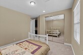 The Masters at Southern Highlands presents a statement with this showpiece that displays soaring vaulted ceilings inside of the massive great room. The gourmet kitchen features java cabinets, granite counter tops with a generous size island that sits up to 5. The primary bedroom is on the first floor with a prize wining bathroom design that is a true work of art thats crafted and designed with a separate walk in shower with dual shower heads and tub that end you days with grace. The primary closet also has a stacked washer and dryer for convenience. Downstairs also features a gen suite with sink and cabinets with an exiting sliding glass door. Upstairs offers a spacious loft/media room with one guest bedroom offering a private bathroom and walk in closet and another room providing a balcony over looking the Masters! The main laundry room is upstairs and has a sink and cabinets. The low maintenance backyard has a spacious, sleek design with a fireplace underneath the covered patio!