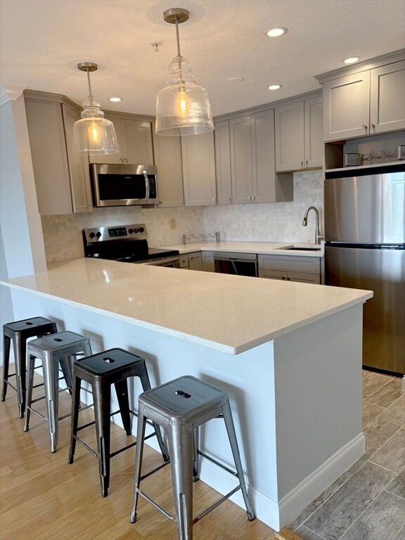 AVAILABLE NOW. Welcome to THE ESSEX! This one-bedroom condo is perfectly situated in the heart of vibrant downtown Salem. Freshly painted,it features a sunlit open concept living-dining area with wood floors and a Juliet balcony offering sweeping city views. Enjoy the sleek renovated kitchen with wood cabinetry,granite counters,breakfast bar,stainless appliances,and stone flooring. The over-sized bedroom has wood floors,generous closets,and an adjacent beautiful full bath. Building amenities include an elevator,indoor pool,fitness center,clubroom,extra storage,laundry room,and an unexpected glorious courtyard. RENT INCLUDES ONE-CAR PARKING PASS,GAS HEAT AND WATER--NOT electricity or wi-fi/internet. NO SMOKERS. NO PETS. Parking is in attached municipal garage. Experience this historic city's restaurants,boutique shopping,waterfront,Salem Common,and museums including the renown PEM just outside your door. There is a $50 non-refundable application fee for all adults. MLS# 73402621