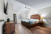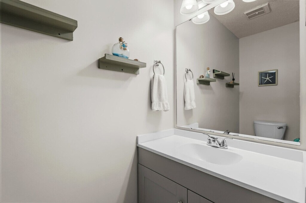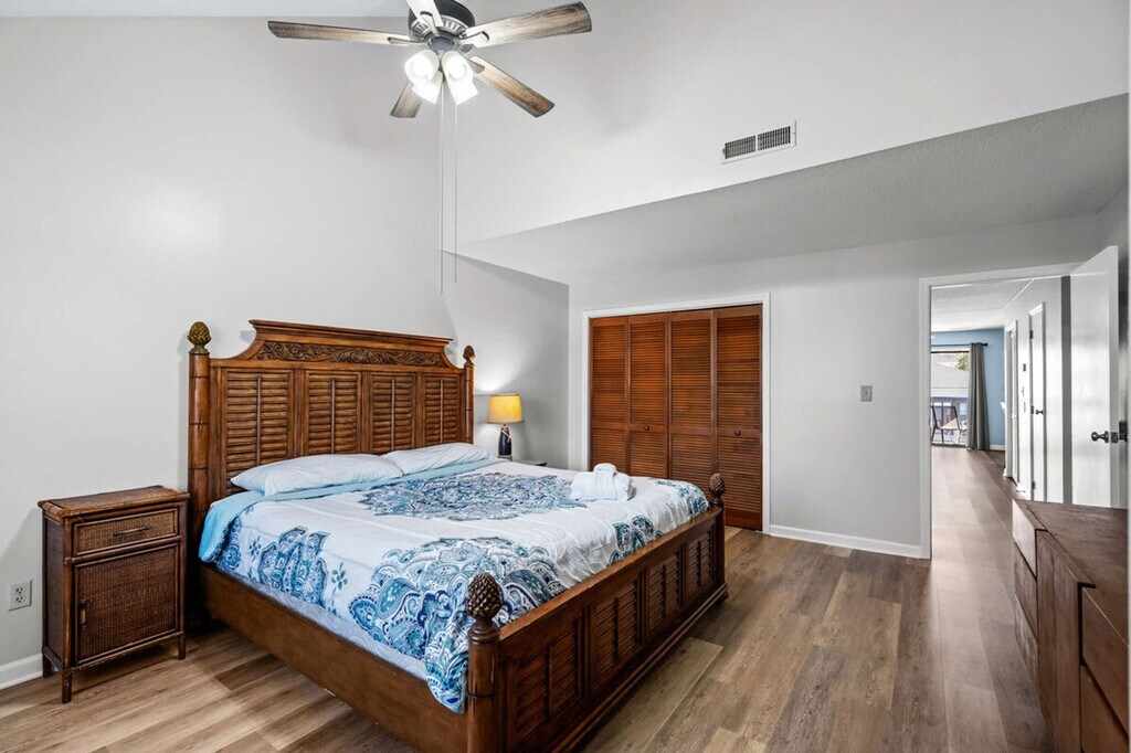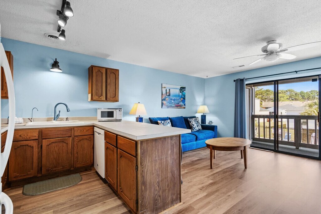 Step into this spacious 750 sq. ft. 1-bedroom/1.5 bath condo and feel at home with its mid-century modern vibes. From the king-size bed and beautiful sideboard in the huge bedroom to the high-end sofa and dining table, you will notice that no expense has been spared in filling it with tasteful and modern accoutrements. This 1-bedroom 1.5 bath villa has everything for a relaxing vacation and sleeps 4 with a double bed and 1 pull-out sofa in the living room. Linen service, including linens for all beds in the home as well as bath towels, hand towels, and wash cloths, is available for an additional fee of $50 for your stay. You will want to bring pool/beach towels and any other linens you will need for the stay if you decide not to purchase linen service. This adorable villa is just a quick drive to the beach. Golf Colony Resort is tucked quietly back in the Deerfield subdivision but right in the middle and close to everything! Guests must be 25 years of age or older to reserve. Routine pest control treatment is scheduled during your stay, typically occurring on the 3rd Thursday of even months. A licensed and insured technician will need access to your unit to perform the service and will knock before entering, completing the treatment in just a few minutes. A fine may be applied if entry is refused. [SI]