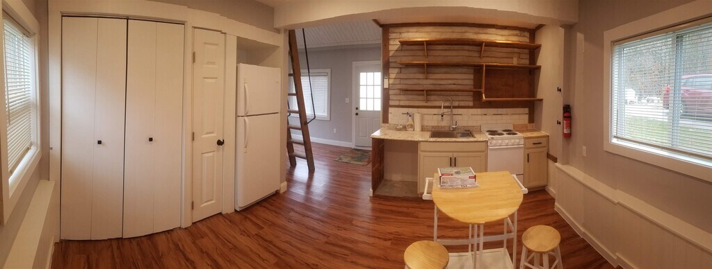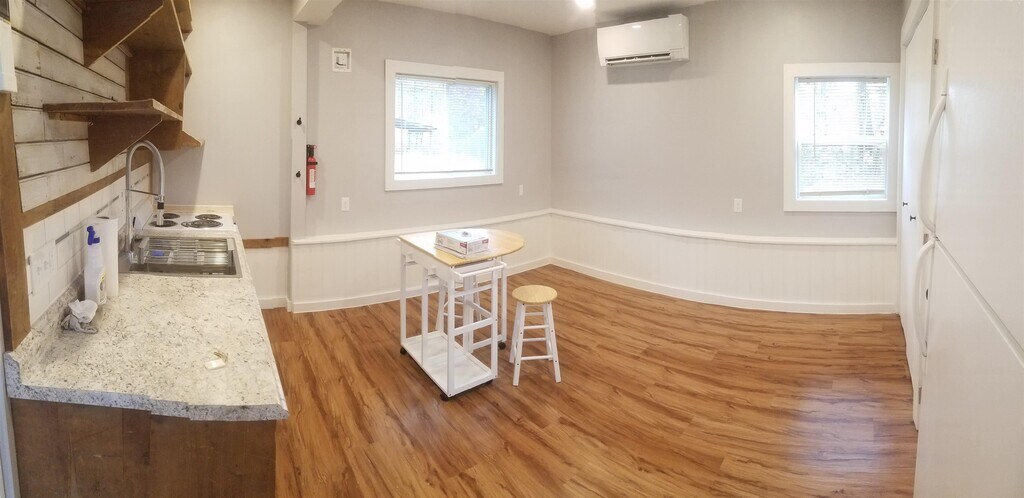 Dreaming of a tiny home in Kittery that’s close to…well, everything? This tastefully renovated, pet friendly 1 bedroom detached ADU offers cozy charm with layout flexibility and thoughtful design. Step inside to a bright, welcoming space where natural light pours in through the front windows and skylight year round. The main room can serve as your living area or bedroom if you prefer single level living. A ladder leads to the loft, ideal for a queen size mattress, some oversized pillows for relaxing, reading, or whatever combination suits your lifestyle. The kitchen features efficient storage with open shelving, a pantry, and a clothing closet plus an in-unit LG washer/dryer combo for easy laundry days. Stay comfortable year round with a high efficiency mini split for heating and cooling. Outside, you'll find your own patio with a grill and garden area, perfect for making the most of the summer months. There's one off-street parking spot and exterior storage for your gear. 1 cat or 1 dog under 25 lbs is welcome with a $50/month pet fee. Rent includes water, sewer, landscaping, and snow clearing of the driveway. Tenants are responsible for electricity, trash, cable/internet, and shoveling their own walkway/patio. TWO months’ security deposit AND FIRST month’s rent are due at lease signing. The lease requires a minimum six month commitment and all applicants must complete a credit and background check. The home is available starting December 1, 2025, with flexible move in date MLS# 5067591