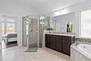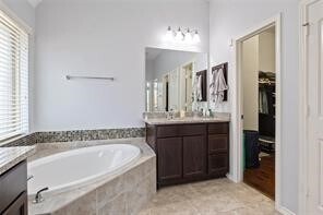 Step into luxury in this home with solar panels,ensuring low electric bills! An extended foyer welcomes you with a grand 12-foot coffered ceiling. To the left,a tranquil library offers space for quiet moments. The family room boasts expansive windows,bathing the space in natural light. The kitchen is a culinary haven,featuring a spacious island and a walk-in pantry. Retreat to the opulent master suite with large windows and a spa-like bath. Guests will feel at home in the comfortable guest suite with a full bath. Additional secondary bedrooms complete this thoughtfully designed,single-story home. With a two-car garage for convenience and storage,this home elevates your lifestyle. NO CARPET!!! NO BACK NEIGHBOR! MLS# 54988473