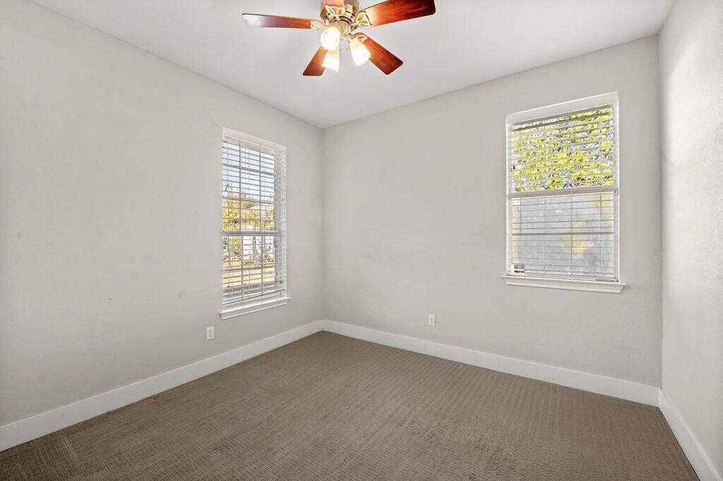 Stunning home located in the highly sought-after community of Woodcreek offers many beautiful features! It is situated on a .29-acre lot located near the end of a cul-de-sac. The end of the cul-de-sac is adjacent to a 17-acre ranch, providing an added sense of peace and tranquility. Hill Country sunsets stretch for miles. There are lush green panoramic views all around. It is an incomparable little gem on a private road. A cobblestone-like pathway and a large front porch surrounded by luscious greenery greet you when you first walk up. Upon entering, you are greeted by a dedicated formal dining area. Your living room is bright and airy, featuring high ceilings and many windows. You have Venetian blinds throughout the property. You have a floor-to-ceiling limestone fireplace. Imagine curling up with a good book next to the roaring fire. Your country kitchen features a peninsula counter, a built-in microwave, a pantry, a smooth cooktop stove, and a breakfast area. The primary bedroom is spacious and serene. A tray ceiling and crown molding make this space look luxurious. Off the primary bedroom, there is a small, open alcove. Ideal for an office or sitting area. You'll love recharging in this space. Your ensuite features a double extended vanity, a walk-in shower, a soaking tub, and a WIC. Spacious secondary rooms with plush carpet and ceiling fans. Your secondary bath features a single extended vanity and tub/shower combo. Head upstairs and you'll find a 4th bedroom or a flex space. When it is time to relax, venture out to your covered patio overlooking a spacious backyard. There is ample room for gardening. This space is ready for your finishing touches and is perfect for a BBQ. You have a tough shed for all of your gardening tools. Updated roof and gutters. Take a short drive to Jacobs Well, or have a fun day exploring Wimberley.