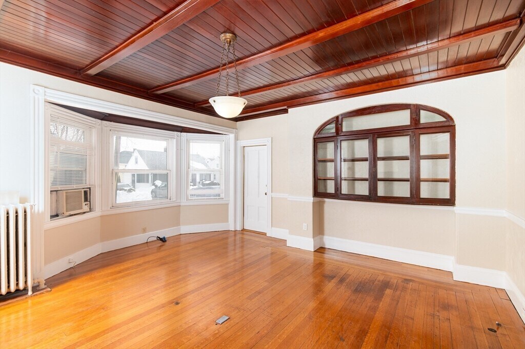 This beautiful Victorian first-floor apartment is ideally located in a prime commuter location,just a short walk to the North Quincy MBTA Station and minutes from Wollaston Beach. This apartment is filled with charm and character,sun-drenched apartment features gleaming hardwood floors,classic details,and tasteful updates throughout. A custom cherry cabinet kitchen offers abundant cabinet space and comes equipped with a refrigerator,dishwasher,and gas stove. The spacious living room is a grand,light-filled space highlighted by wood-beamed ceilings,built-in china cabinet,and a decorative fireplace. The king-sized bedroom features hardwood floors,ceiling fan,and another period decorative fireplace. full bathroom with a stand-up shower completes the unit. Includes heat,hot water,and gas cooking. Off St Parking for one car. Applicants must have excellent credit (700+ FICO),strong credit history,stable,verifiable income. Owner will accept a cat,common laundry in basement. MLS# 73477079