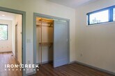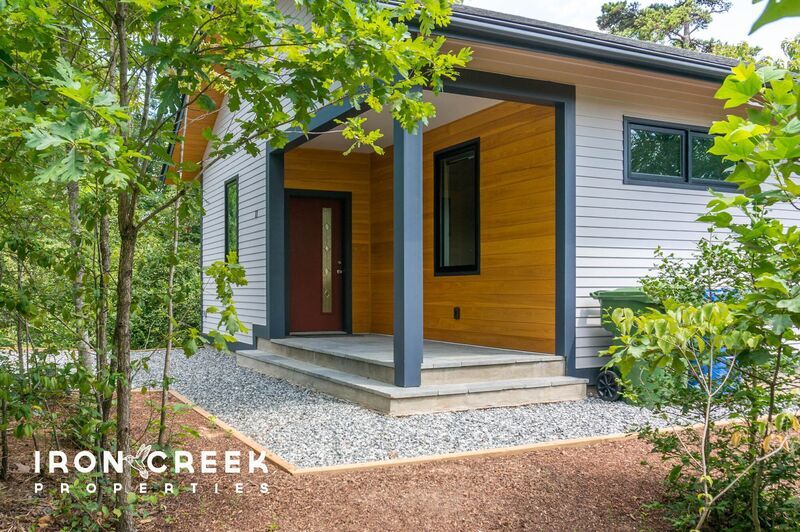 Discover tranquil living in this thoughtfully designed one-bedroom, one-bathroom home nestled in the desirable Haw Creek neighborhood, just four miles from downtown Asheville and minutes from Whole Foods. This cottage offers the perfect blend of modern comfort and natural beauty, where large windows frame peaceful views and create a seamless connection to the surrounding landscape. The heart of this home features a well-designed kitchen outfitted with a French door refrigerator with ice maker, dishwasher, over-the-range microwave, electric range, and garbage disposal. Wood cabinets in a sophisticated blue-gray finish complement quartz countertops and a subway tile backsplash, while the wrap-around counter with breakfast bar provides excellent workspace and casual dining. Adjacent to the kitchen, a convenient desk nook with ATT fiber connection overlooks a beautiful Magnolia tree, creating an ideal work-from-home setup. The bright living area showcases a large picture window that bathes the space in natural light while offering tranquil wooded views. Luxury vinyl plank flooring flows throughout the main living areas, providing both beauty and easy maintenance. The bedroom features generous natural light and a ventilated wood closet system for optimal storage. The bathroom offers a refined escape with radiant heat floors, a wood vanity with quartz countertop and tiled backsplash, and a luxurious floor-to-ceiling tiled shower. Additional features include a dedicated laundry room with washer and dryer, built-in cabinets, laundry sink with quartz counters, and a floor drain for added convenience. Semi-conditioned attic space provides extra storage. Central air and electric heat ensure year-round comfort. Outside, enjoy a gravel driveway for easy parking and a stone patio nestled in a peaceful tree grove, perfect for morning coffee or evening relaxation. Tenant pays all utilities. Landscaping and lawn maintenance services are included. Sorry, this property is not pet-friendly and does not accept co-signers.