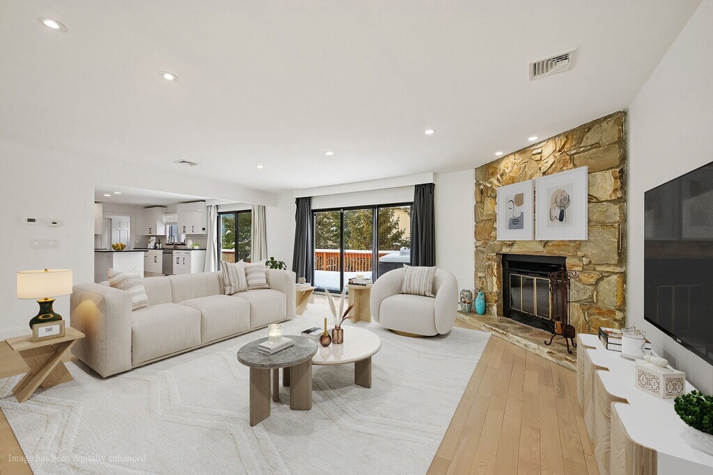 Beautifully fully renovated custom colonial with modern elegance, just minutes from the entrance to the GWB. This home features a bright, open layout perfect for everyday living and entertaining. Spacious sunken living room with fireplace, modern eat-in kitchen with high-end appliances and center island, formal dining room, and powder room complete the main level. Upstairs offers a luxurious primary suite with a brand new spa-like bath, three additional bedrooms, and a renovated hallway bathroom. The ground level includes a family room, office/bedroom option, and a full bath. Excellent K-8 schools and an ideal commuter location with quick access to NYC.