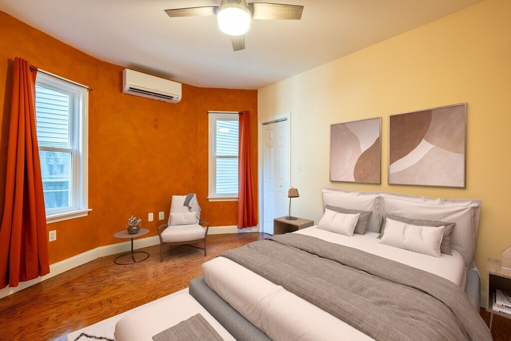 Welcome to this beautifully updated first-floor condo offering 2 bedrooms,2 full baths,and 925 sq. ft. of bright,well-designed living space. Inside,you’ll find sun filled rooms with hardwood floors throughout and an open concept layout that’s ideal for both everyday living and entertaining. The modern kitchen features sleek finishes and a smart design,while both bathrooms have been tastefully renovated to maximize comfort and convenience. In-unit laundry and brand new mini split systems for efficient heating and cooling for year-round comfort. Step outside to enjoy a private deck and shared backyard. Perfect for gatherings,pets,or simply unwinding outdoors.Located on a quiet street just steps from a local park,this home offers city convenience with a touch of nature. You’ll be close to MBTA,restaurants,and neighborhood amenities. Plus,permit-free street parking makes daily life simple. Move-in ready! Available Now! No Broker fee for Tenants. MLS# 73457280