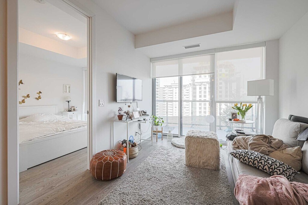 1 bedroom plus den. 1 Bath. Parking! Internet! The Lash Distinction is a luxury boutique condo at the corner of Lillian and Soudan. Right in the heart of Yonge and Eglinton. Close to Subway, shops, dining, theatres, and more. Just one year old, the building has a state of the art fitness facility, party room, meeting room, and gorgeous rooftop terrace. This unit has it all. Upgraded everything! Full kitchen with Miele stainless steel appliances, in-suite front-loading washer and dryer. Flat 9 foot ceilings, extra tall doors, closet organizers, blackout blinds, and more. The balcony is huge and has a gas hook-up if you want to use a barbeque. Bell 1.5GBit Internet is included. Parking is also included .