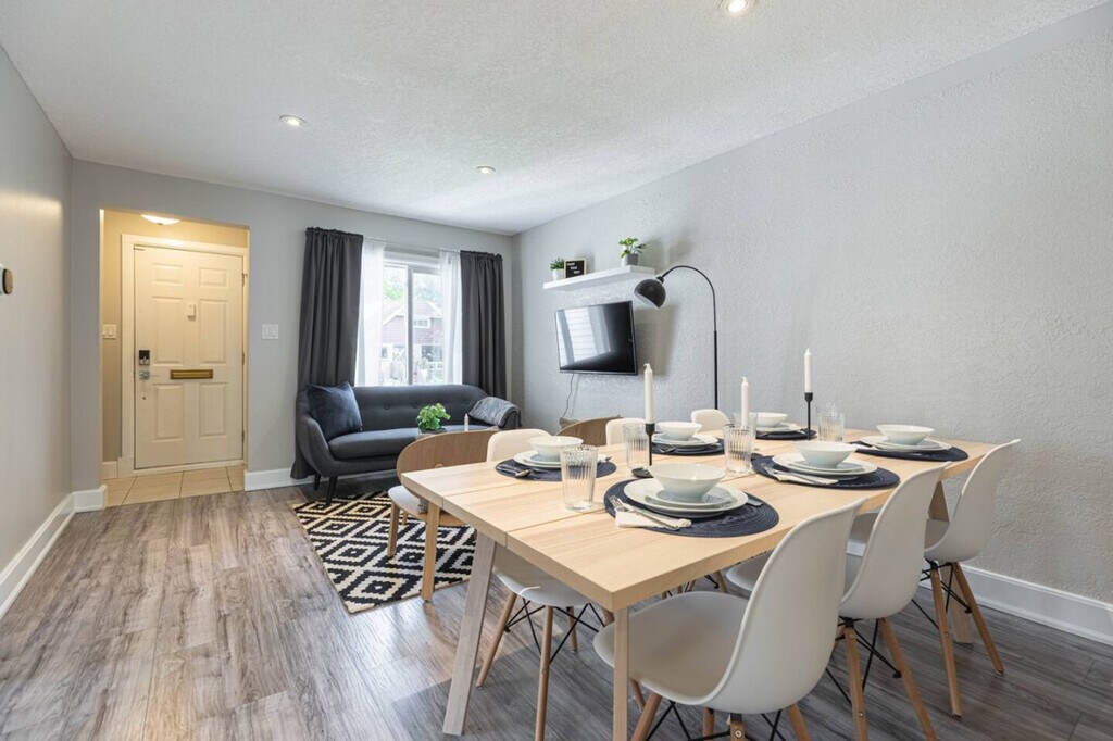 The advertised rate of C$3,194/month is the lowest available price, based on a 30 day(s) stay with a move-in date of March 23, 2026. Rates vary depending on the duration of stay, season, and other parameters. For exact pricing and additional pricing components, please visit our website and enter your desired move-in and move-out dates. The rate is applicable when billed upfront; it can be higher if billed in multiple payments. Feel at home in this newly renovated and furnished home, meticulously designed with functionality and comfort in mind. The fully stocked large kitchen and living room, equipped with a Smart TV with access to Netflix, Prime, Crave, Disney+, and more, ensures a comfortable and relaxing stay. Super high-speed Wi-Fi and a modern bathroom are included. Guests have full, private access to the backyard patio and newly installed fire-pit. Furry friends are welcome with additional fees of $25/day for 1-5 days, $200 for 6-28 days, and $300 for 29+ days. Guests reserved for 28 days or more are responsible for their own consumables after the initial reserve provided is used. Conveniently located just off Oxford St, this home is minutes away from Bellwood Plaza for groceries, LCBO, and eateries. It's also a short 5-7 minute drive to Western University, Fanshawe College, and Downtown London, with easy access to public transit. Quiet hours start at 10pm until 8am. Smoking is not allowed inside the property, and evidence of indoor smoking will result in a $1000 fine. Pets are not allowed on fabric couches/chairs and beds, and any evidence or damages will require additional cleaning and will be charged back to your reservation. No parties or undeclared social gatherings are allowed, and guests will be charged $500 for breaking this rule. A surcharge of $100 per undeclared guest per night will be applied for unapproved guests. Please be advised that the door may not lock automatically, so you will have to make sure it is locked before you leave the house. Security cameras monitor the entrance of the home for safety and security, and tampering with these cameras will result in immediate cancellation of your reservation. A noise sensor measures the decibel level inside the stay, and tampering with this noise device will result in immediate cancellation of your reservation. If any of the listing rules are abused, you will be subject to additional charges and your reservation may be terminated. There is a late check out penalty of $100/ hr. after 11:00 a.m. in case of a delayed checkout. Please do not use the wooden steps as they're currently damaged. [SI]