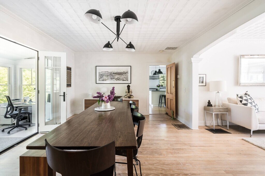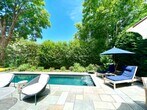 In the Village of Sag Harbor, with a large veranda and a summer porch, a heated gunite saltwater pool with Jacuzzi, surrounded by a private garden, comfy lounge chairs, outdoor dining with Umbrellas and double Barbecue grill, and an entertaining barn to hang out and play ping pong in. Inside the furnishings are magazine wonderful. There is an open dining room that flows into a living room with an overstuffed white couch and chairs, which opens into a den/TV room/ library with a fireplace. Light-filled and spacious, the brand-new country kitchen is a great hangout, featuring a Sub-Zero Fridge, a Viking Stove, a farm sink, a pantry, and a new washer and dryer. The new oversized Primary Bedroom addition is gorgeous, featuring a new bath with a separate tub, shower, and double sinks. There is an extra full bath downstairs with a tub. Upstairs are 3 spacious bedrooms and another full bath. Central AC, this house has all the perks and tons of charm. The gardens have exploding flowers, a lush green yard, old-world trees, and a fenced saltwater heated pool. On a quiet street, but close to everything, parks, Main St., dining, and bay beaches. Featured in design publications, this is the perfect essential retreat. Comes with bikes too. Please feel free to contact me for a video tour. Rental Terms: August: $80,000 Two Weeks: $45,000 July: $80,000