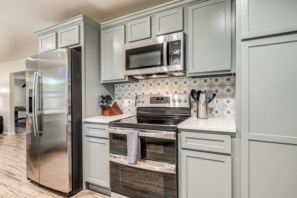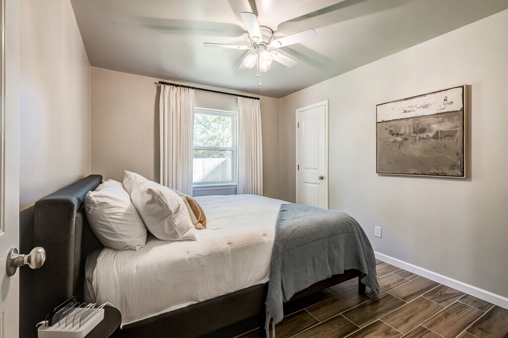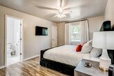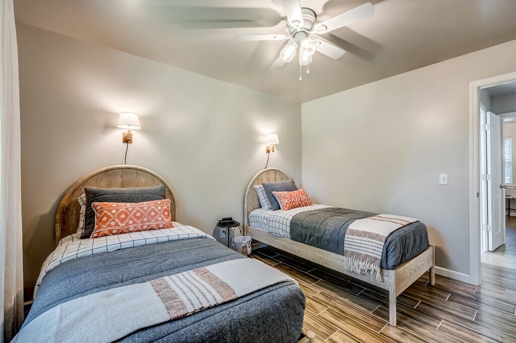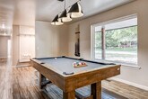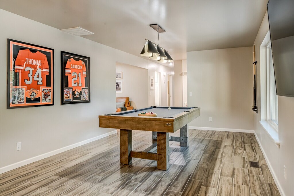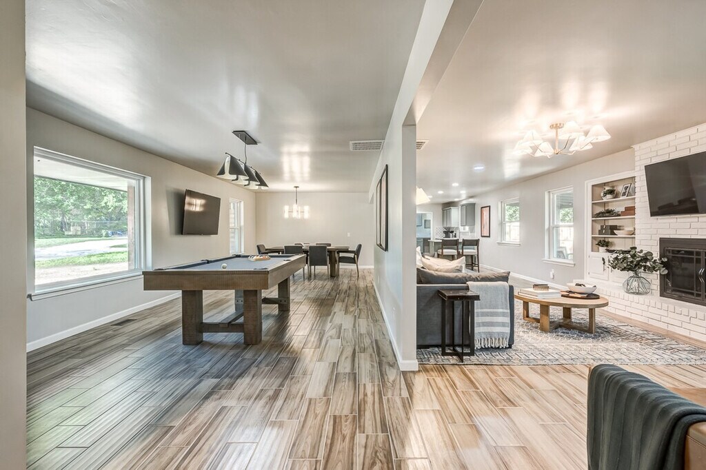 This beautifully updated 4-bedroom, 3-bathroom getaway is ideal for families and groups looking to relax in comfort and style. Gather around the large dining table that seats 8 for memorable meals, or the game area to shoot some pool while watching your favorite sports on the mounted TV. With multiple living spaces to spread out, everyone will feel right at home. The spacious backyard offers a covered patio and a cozy fire pit to simply lounge and enjoy the fresh air. [SI]