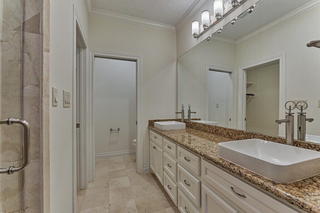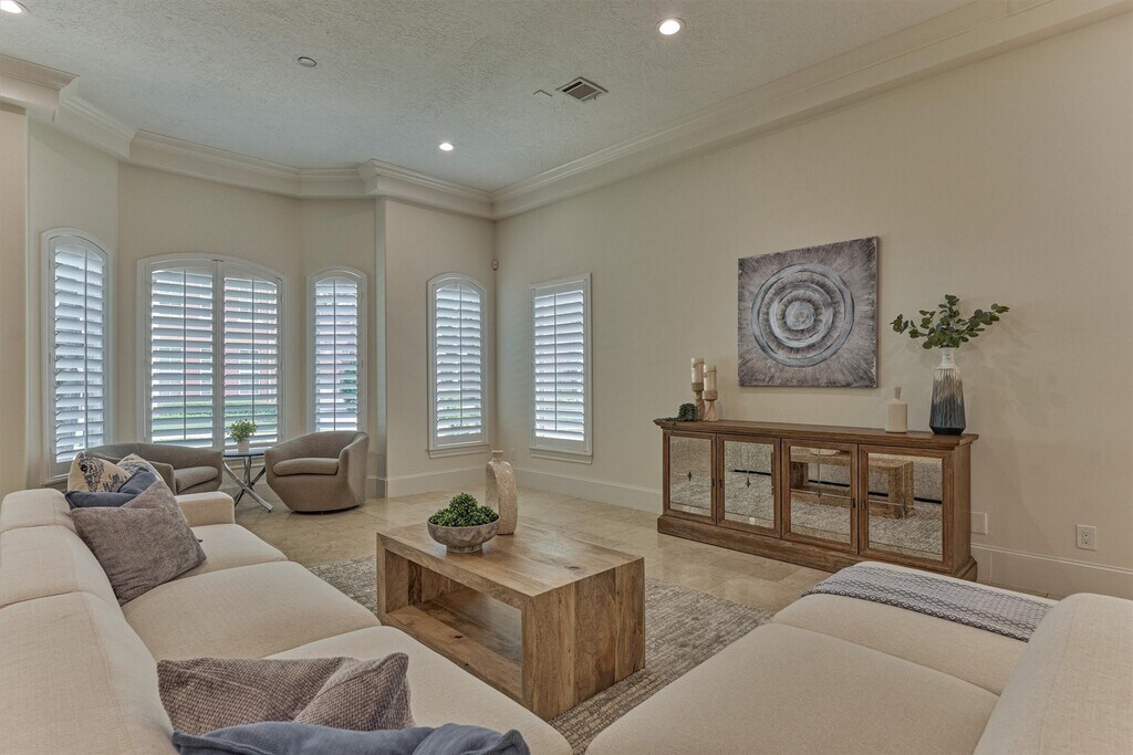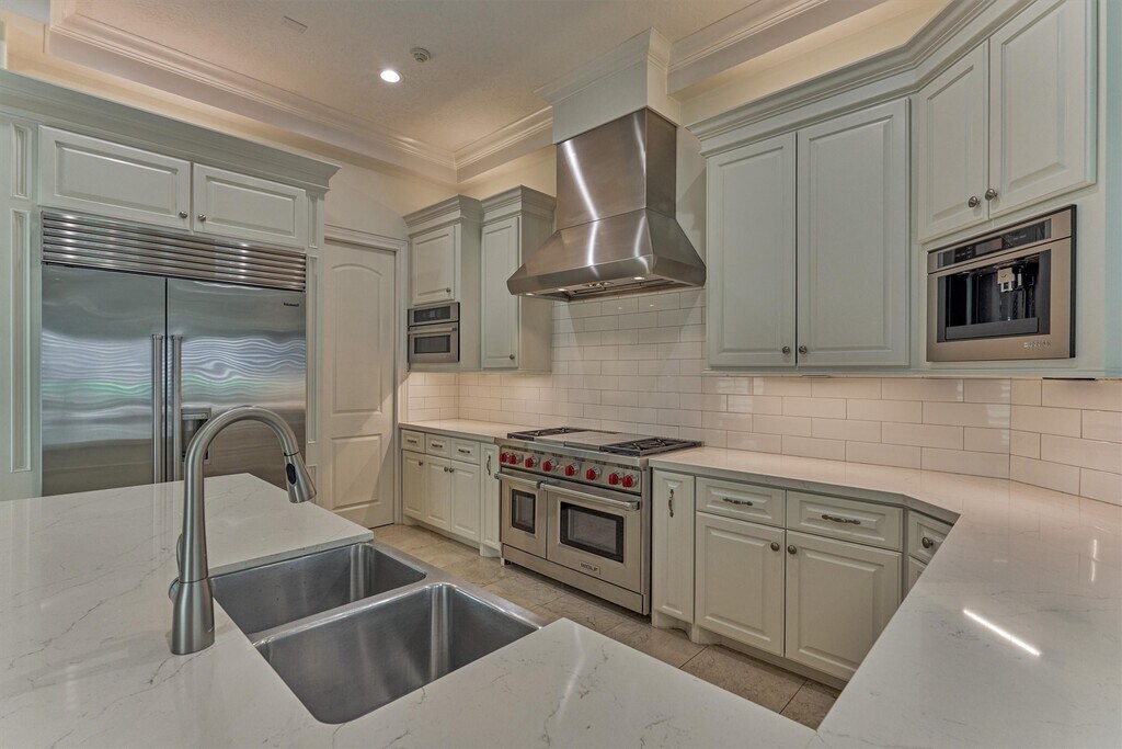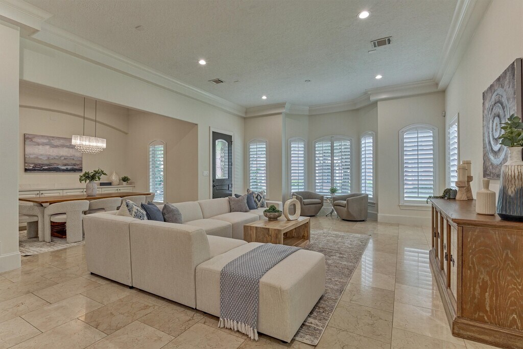 Nestled within the Exclusive and Highly Coveted East Shore Community,this Elegant 3-Story Residence Offers 5-Bedrooms Each Boasting an En-Suite Bath (1st Floor Primary Bedrm),Game Room,Home Office Area and a 3-Car Attached Garage w/Access from the Private Back Alley. Home is Elevator-Ready and Features a 650 SF Above-Garage Apartment or Guest Suite Complete with Its Own Kitchen and Private Entrance. Exuding Sophistication,the Property Showcases Abundant Upgrades & Designer Touches Throughout Including Extensive Crown Molding,Wide Wood-Tread Stairs w/Scrolled Metal Spindles and Exquisite Travertine & Wood Flooring. Gourmet Kitchen Appointed with a Wolf Gas Range,Sub-Zero & Built-In SS Jenn-Air Coffee Maker,Dishwasher,Microwave & Built-In Wine Fridge in the Dining Room. Custom Built-Ins Grace Every Closet & Extend Throughout the Home. Its Perfect Location Offers Unparalleled Proximity to Town Center,Walking Distance to the Mitchell Outdoor Pavilion,Waterway,Shopping & Dining. MLS# 36714232