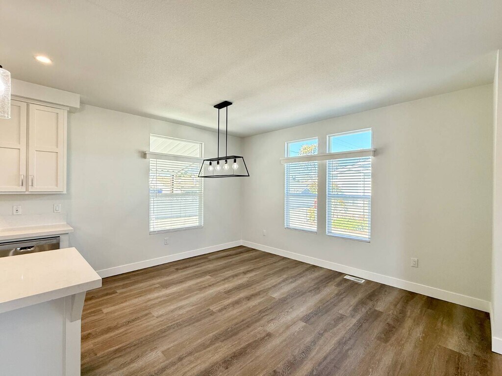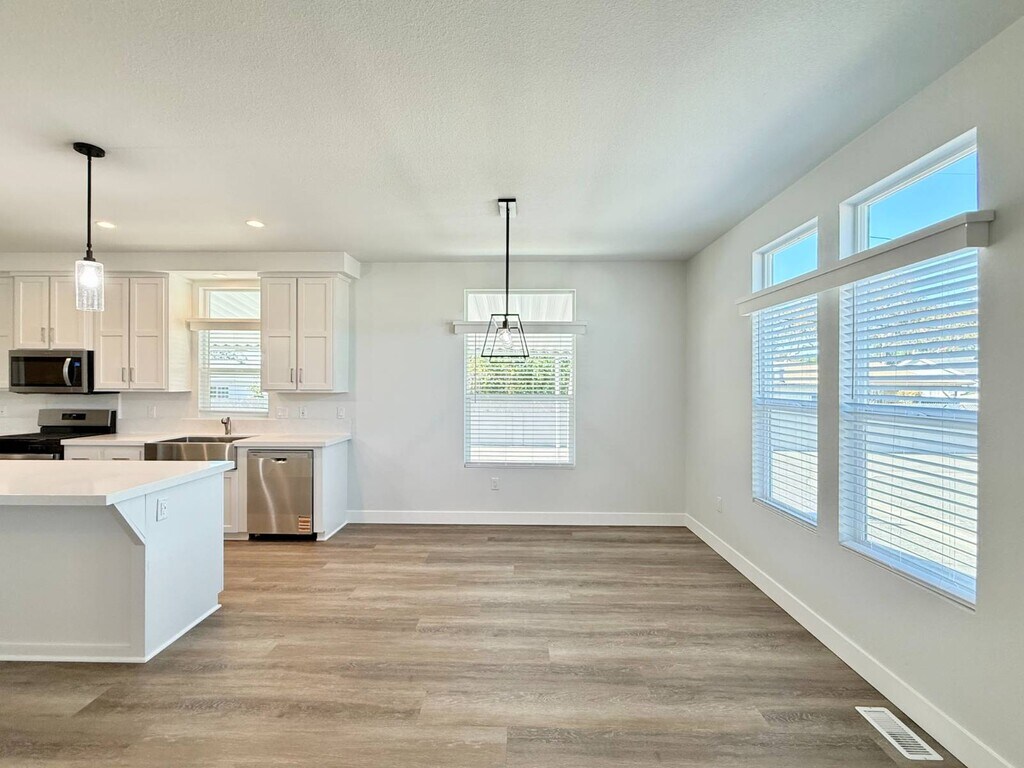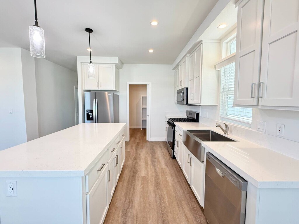 Experience unparalleled, brand-new luxury in this impeccable 2025 Manufactured Home available for rent. Offering a sprawling 1,800 square feet of living space, this spacious 3-bedroom, 2-bathroom residence is designed for a high-end, low-maintenance lifestyle. Step inside and be greeted by elegant 9-foot flat ceilings and abundant natural light flowing through oversized windows throughout the huge living room and dining area. The sophisticated interior features durable luxury vinyl plank floors and plush carpet in the bedrooms, complemented by designer fixtures and ceiling fans in every room. The heart of the home is a True Chef's Kitchen, showcasing stylish white shaker-style cabinets, brilliant quartz countertops, all stainless steel appliances (included), and a stainless steel farm sink. A huge center island is perfect for entertaining, while the enormous, bedroom-sized walk-in pantry provides custom shelving and cabinets for unmatched storage. Retreat to the Outstanding En-Suite Primary Bedroom and bath, which includes a double sink vanity, a dedicated large soaking tub, a separate step-in shower, and a spacious walk-in closet. This home is built for superior practicality and comfort. It features two very large guest rooms and a guest bath with a highly functional double sink setup. The Spacious Laundry Room is a standout, complete with the washer and dryer included, plus additional cabinets and a linen closet. Outside, the property boasts fantastic curb appeal and offers dual outdoor spaces: a tranquil side patio and a back patio. Situated on a desirable private corner lot in a great location in the park, utility is maximized with a large dedicated shed for all your needs and convenient covered parking for three vehicles. This residence truly delivers on all fronts-unmatched style, substantial space, and convenience. Don't miss the opportunity to be the first to live in this exceptional new construction-it will not be available for long!