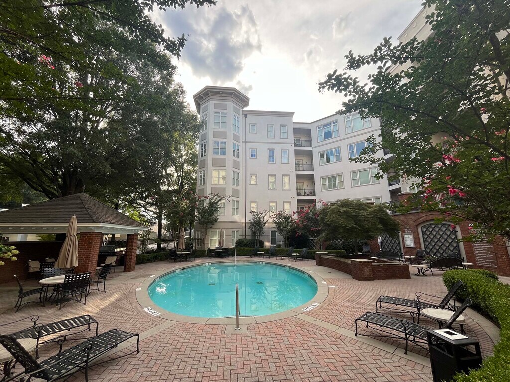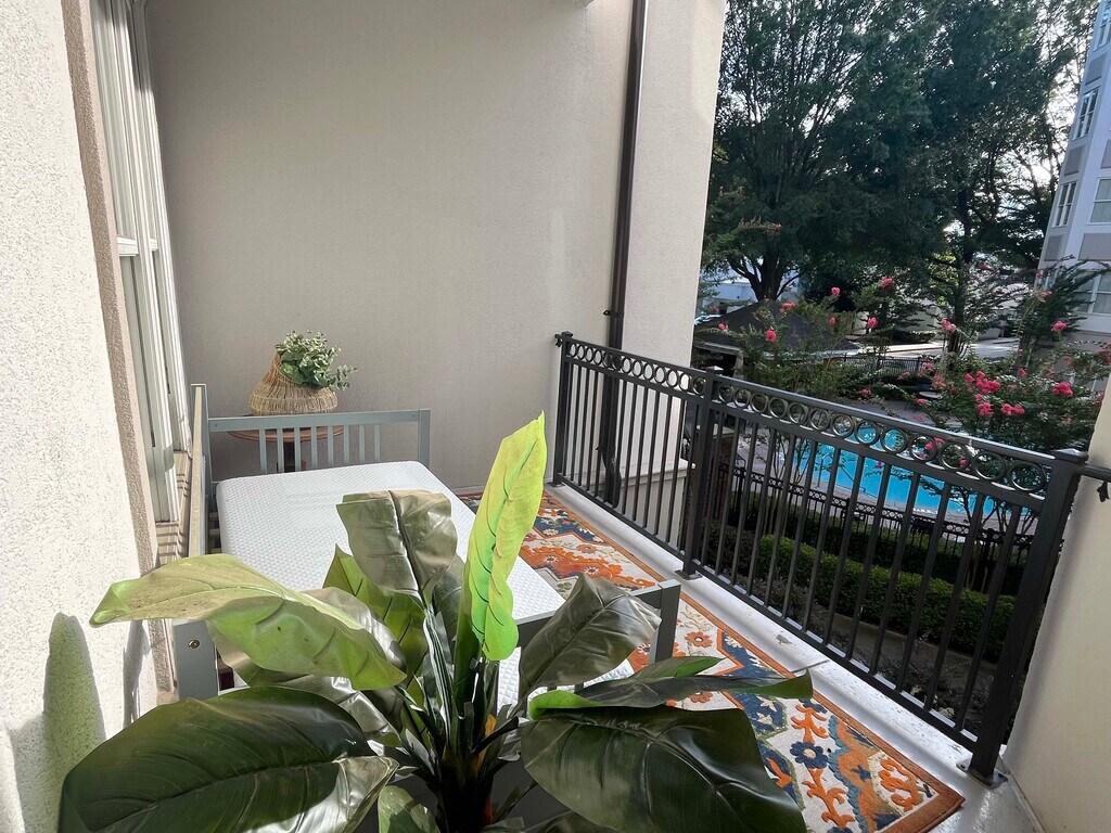 Beautifully renovated and move-in ready, this spacious condo offers a perfect blend of style and comfort. Rent includes gas and covered garage parking! Both bathrooms have been thoughtfully updated, and the kitchen features modern updates, including a Spanish-inspired tile backsplash, gas cooktop, and elegant crown molding. High ceilings and abundant natural light enhance the open-concept layout, creating a bright living space. Almost 1000 sq ft and lots of natural light!! Enjoy relaxing on the large private covered balcony overlooking the saltwater pool. The oversized primary suite includes a generous walk-in closet and a luxurious bath with double vanities, a garden tub, and a frameless glass walk-in shower. Community amenities include a saltwater pool with a cabana and grills, a fitness center, gated garage parking, and concierge service. Conveniently located within easy distance to Cafe Intermezzo and Perimeter Mall, with easy access to I-285 and GA-400.
