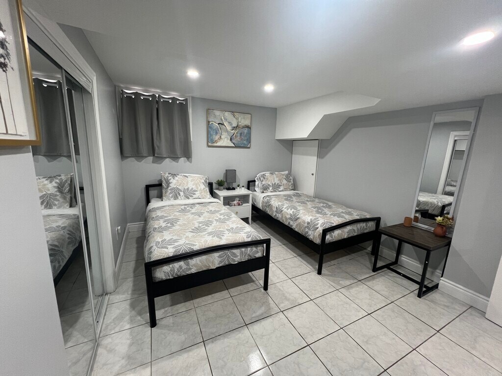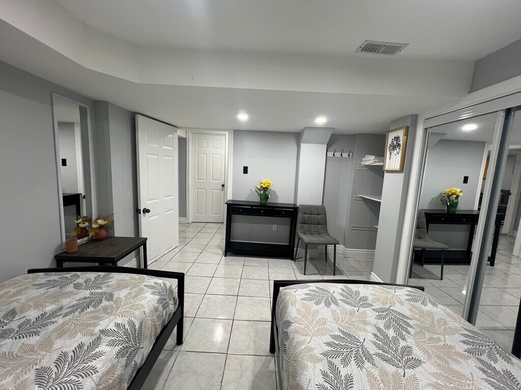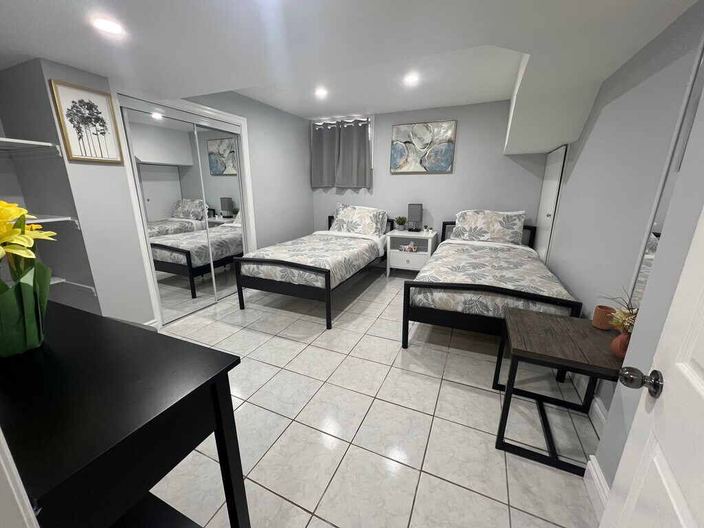3 Private Rooms in a Basement Apartment – Just South of Britannia on Queen Street in Streetsville. Tastefully Furnished - Bright & Spacious with big windows - First Bedroom (Rent $975) has a Two Seater Sofa, Single Bed with comfortable Mattress and furnishings, new smart TV, Centre Table, and closets for storage; Second bed room ($1100) has 2 Twin size beds, chair and a table, spacious sliding mirror door closet, and additional storage areas; Third Bedroom ($975) has Queen size bed, a 3-seater Sofa, a table, and spacious sliding mirror door closet. Kitchen has Microwave, Kettle, Coffee maker, Toaster, basic Cook ware. Laundry and ironing services are available. One Parking space per room is available on the back of building. Conveniently located just South of Britannia on The Queen St., Steps to Public Transport, Major Highways, Go Station & Other Amenities. Separate Entrance from back side, Onsite Parking. Prefer a working Professional; work Visa or Student Visa ok. Currently Vacant Ready to Move in – contact by WhatsApp/ text