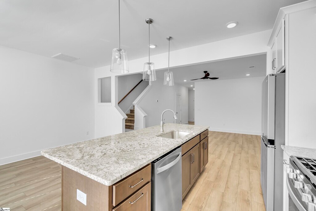This modern townhome, built in 2024, offers three bedrooms and two and a half bathrooms. It's ideally located less than five minutes from Travelers Rest Main Street and under ten minutes from Furman University, with the Swamp Rabbit Trail just a short distance away. The home features a sleek, open-concept kitchen with granite countertops and stainless steel appliances, flowing into a generous dining area and living room. It also includes a single-car garage with extra driveway space, and a washer and dryer are provided. Yard maintenance is included as well. The property will be available starting November 1st, with a monthly rent of $1,975 and a security deposit of the same amount. Background, credit, employment, and residential history checks are required, and the agent is the owner. Reach out today to schedule a viewing!