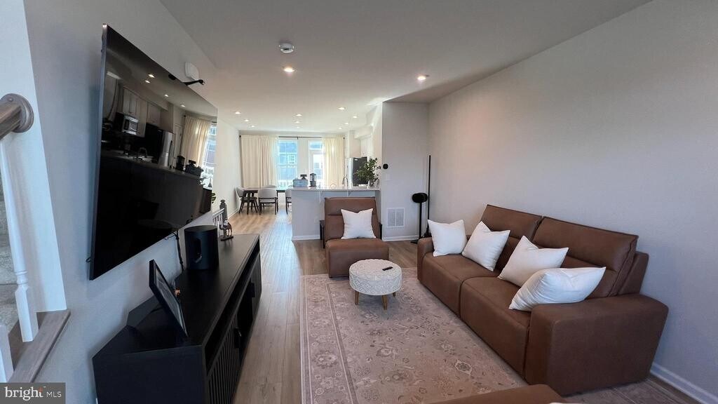 Experience the pinnacle of modern convenience in this sophisticated, new construction townhome. Spanning three thoughtfully designed levels, this 2-bedroom, 2.5-bathroom residence combines high-end finishes with a location that is a commuter’s dream. The first floor features a spacious family room perfect for a home office or media den. Enjoy the ultimate convenience of an interior dedicated Tesla EV charger, inside garage access with a rear garage door and an assigned parking spot for the unit. A modern half-bath completes this level. The main living area on the second floor is bathed in natural light and recessed lighting, and the open-concept second floor features durable LifeProof vinyl flooring. The chef-inspired kitchen is the heart of the home, with an island, upgraded countertops, a built-in microwave, a stylish breakfast bar, and a deep, oversized sink. Step through the sliding doors onto your private Trex deck—perfect for morning coffee or evening cocktails. The upper level hosts two generous bedrooms and two stunning full bathrooms. The primary suite serves as a private oasis with a custom-tiled walk-in shower. For maximum convenience, the stackable laundry is located on this floor. Positioned perfectly for the modern professional, this home is located within a block to the Lindenwold PATCO station. Enjoy a seamless, stress-free commute to the fine dining and culture of Philadelphia or the entertainment of Atlantic City. (No smoking or pets)