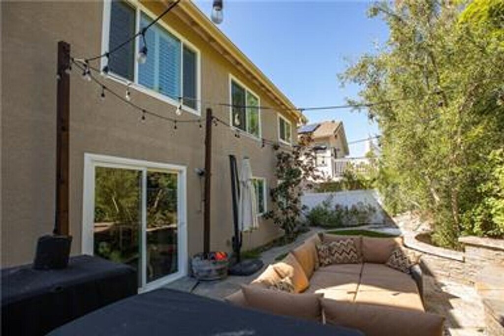 Beautiful split-level home in Wagon Wheel! The upper level features the primary bedroom with remodeled en suite that includes a heated floor, a remodeled kitchen with walk in pantry and a living room with a fireplace. The lower level features 2 bedrooms, a remodeled bathroom and a family room. The entry level features a powder room. Lots of upgrades including newer quartz countertops and wood grain porcelain floors throughout. The vaulted ceilings and tall windows allows for beautiful natural lighting. Save on electric bills with the included solar. Tranquil and private backyard features a waterfall spa, large natural stone firepit and lush landscaped rear slope. The 2 car garage also allows for two cars on the driveway. Located near the south gate entrance to Coto de Caza, minutes to the Toll Road, and in the award winning Capistrano Valley School District. The surrounding area has a local park, horse, biking and hiking trails, and nearby Riley Wilderness Park.