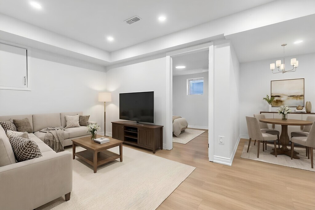 Welcome home to 11 Valley Centre Drive, a newly renovated basement apartment with a separate entrance set in Toronto’s East-end Rouge community. Freshly painted and equipped with new appliances, this well-planned suite offers three bedrooms, a living area and a den/dining area, two in-suite storage areas, one driveway parking space, and a practical layout finished with vinyl flooring throughout. The interior presents a clean, updated feel suited for comfortable everyday living. The suite features a functional layout with a renovated kitchen appointed with porcelain tile flooring, quartz countertops, generous kitchen cabinetry, new appliances, including a fridge, oven, and hood fan, along with a new washer and dryer. All three bedrooms include closets, while the additional den space can be used for living, dining, or office/study needs. Located in a peaceful, family-friendly pocket, this property offers unmatched convenience and access to nature. Families will appreciate being walking distance to the 10/10 ranked Heritage Park Public School, as well as the nearby St. Bede Catholic School. With Highway 401, public transit, the Cedar Brae Golf Club and the scenic trails of Rouge National Urban Park just minutes away, this location perfectly blends urban connectivity with outdoor recreation.