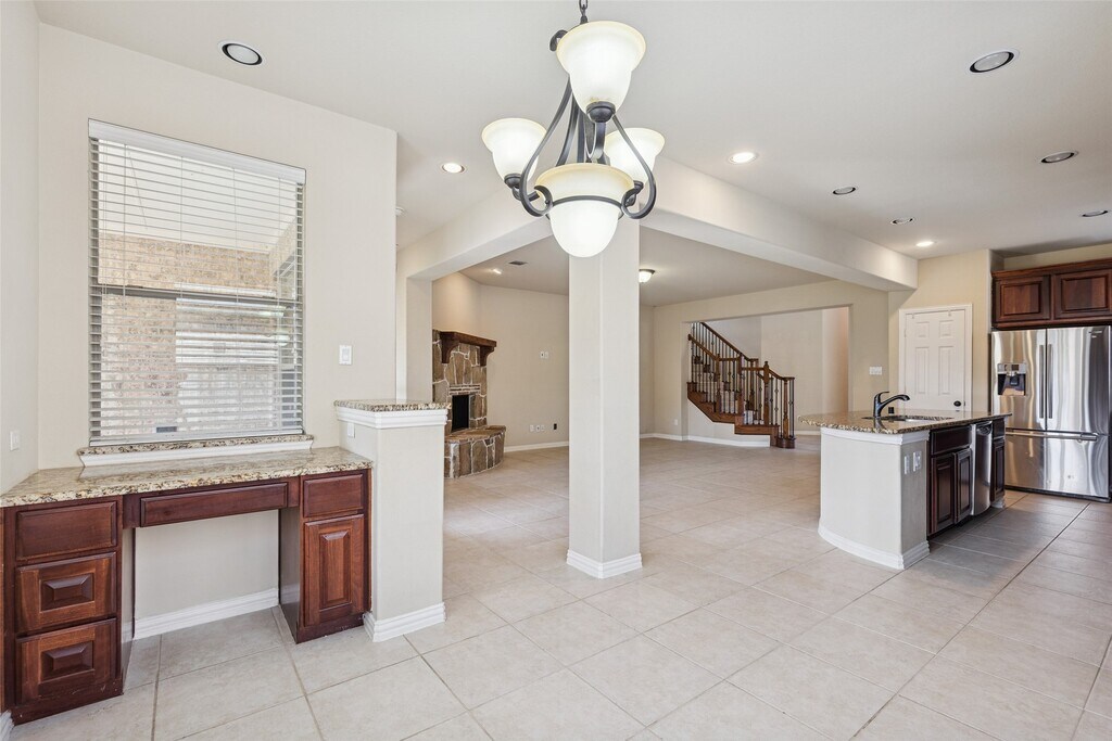 Step inside to a striking entry that sets the tone for this thoughtfully designed home,where flexible living spaces and elegant details create an inviting flow throughout. Just off the foyer,a study/secondary bedroom with flex space and eight-foot French doors offers versatility,while the open floor plan leads into a gourmet kitchen featuring granite countertops,stainless steel appliances,refrigerator included,and a built-in computer desk beside the breakfast area,all opening to the main living space anchored by an impressive stone fireplace. The spacious primary suite provides a relaxing retreat with a large walk-in closet and a luxurious bath complete with dual sinks,soaking tub,and separate shower. Upstairs,a generous game room connects two oversized secondary bedrooms,offering plenty of room to spread out. Enjoy outdoor living under the covered back patio,with a full sprinkler system servicing both front and back yards. Schedule your private showing today! MLS# 31259337