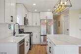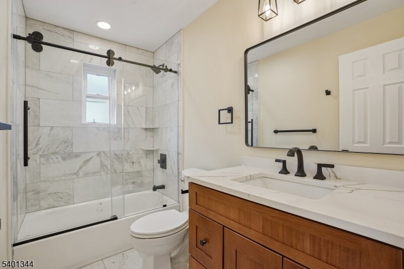 Welcome to this fully renovated 3 bedroom, 2 bath, second-floor unit, thoughtfully redesigned and updated to offer modern comforts and stylish living throughout. This turnkey residence benefits from extensive improvements including all new siding, windows, insulation, flooring, walls, fresh paint, a new roof, a new sewer line, and a double layer sound barrier between levels for enhanced comfort and privacy. The bright and airy layout features an open living/dining area showcasing a beautiful new kitchen complete with quartz countertops, a large center island with ample seating, new cabinetry, a pantry, and stainless steel appliances. Both spa like full baths have been completely transformed and all three bedrooms are generously sized, including a private, serene en suite primary bedroom. Additional conveniences include brand new in-unit stackable laundry, all new lighting and hardware, custom closets, and a Nest thermostat. This unit also features 3 designated driveway parking spaces. Perfectly move-in-ready, this spacious and modern home combines contemporary finishes with everyday functionality. Ideally situated on a quiet street close to Briant Park, NYC transportation, and Summit's vibrant downtown!