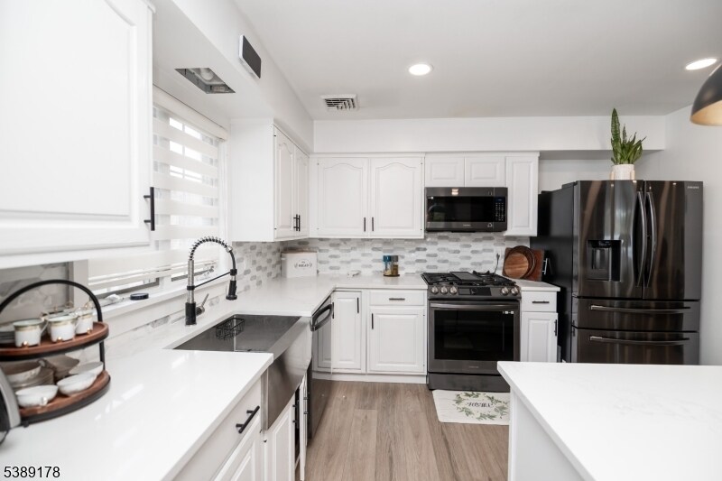 Stunningly renovated lakefront spacious custom home. Super private location with ample sized park like yard. New trex deck, large outdoor patio, Views of lake from Living areas plus Kitchen. All newer appliances, new flooring and nicely updated throughout. Flexible use options with 2 floors of living areas, Extra bedroom/ den on ground level can function as office space, plenty of storage and tastefully designed. Includes a 1 car attached garage. Come enjoy this retreat like property! Hurry wont last!