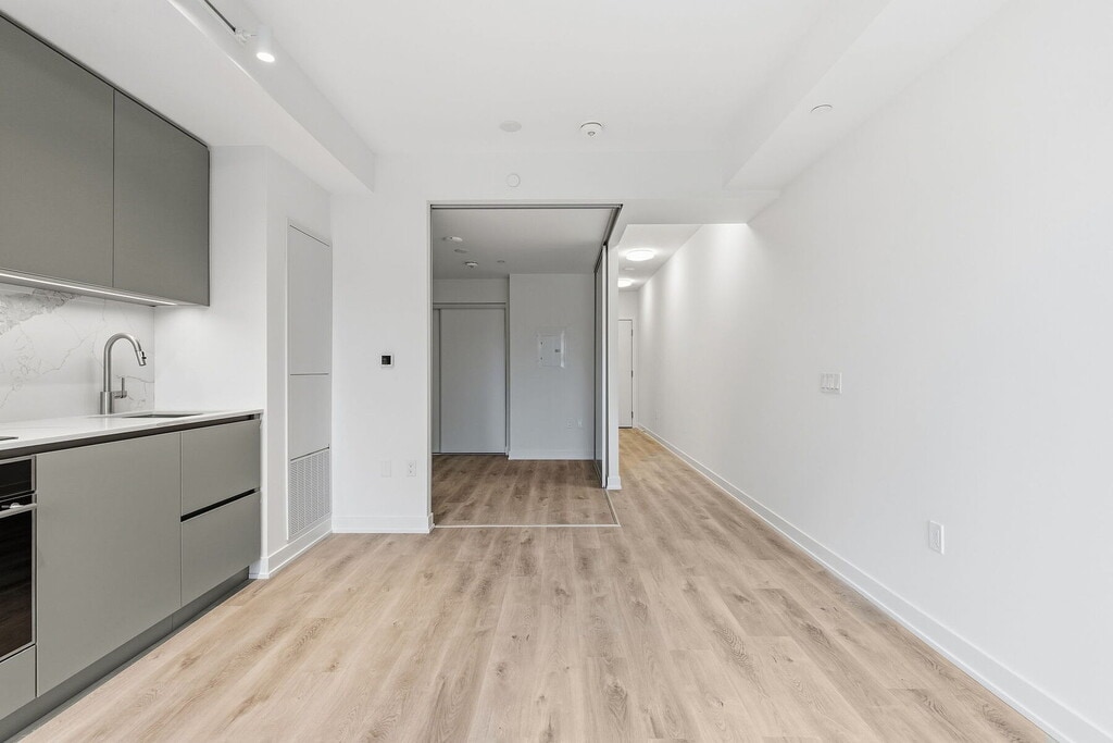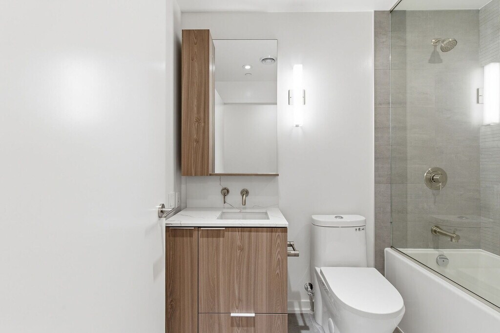 Welcome to Untitled Toronto, a new condominium community at 110 Broadway Avenue developed by Reserve Properties and Westdale Properties, in collaboration with Pharrell Williams and interior design firm U31. Designed by IBI Group, the building’s dynamic façade is inspired by music and movement, with no two sides alike. The South Tower rises 33 storeys, and the North Tower stands 21 storeys, together housing approximately 751 suites all featuring balconies. The architecture reflects a fluid, contemporary aesthetic influenced by nature and sound. Be the first to live in this brand-new, never-occupied 500 sq. ft. one-bedroom suite featuring modern finishes and upgrades. Designed for both comfort and functionality, the suite includes upgraded vinyl flooring throughout, a framed mirror foyer closet, and an East-facing balcony extending from the open-concept living area. The kitchen is equipped with premium integrated stainless steel appliances, upgraded Stone Grey Matte cabinetry, a Quartz slab backsplash, Quartz countertop, and under-cabinet lighting with switch. The four-piece bathroom features Grey Beige vanity cabinetry with mirror, Light Grey Matte porcelain tiles on floors and walls, an upgraded porcelain accent wall, Quartz countertop, and an upgraded bathtub glass panel. Additional upgrades include a capped ceiling outlet with switch in the bedroom and a home theatre rough-in. A stacked washer and dryer and individually controlled heating and air conditioning provide added comfort and convenience. Residents will enjoy over 34,000 square feet of indoor and outdoor amenities. Highlights include an indoor/outdoor pool and spa, state-of-the-art gym and yoga studio, basketball court, rooftop dining with barbecues and pizza ovens, coworking lounges, and private dining area. The grand lobby features a waterfall installation, creating a tranquil, modern entry experience. Additional amenities include a meditation garden, kids’ playroom, screening room, and concierge-attended lobby. The spaces combine natural materials, light, and water to promote balance, energy, and connection.