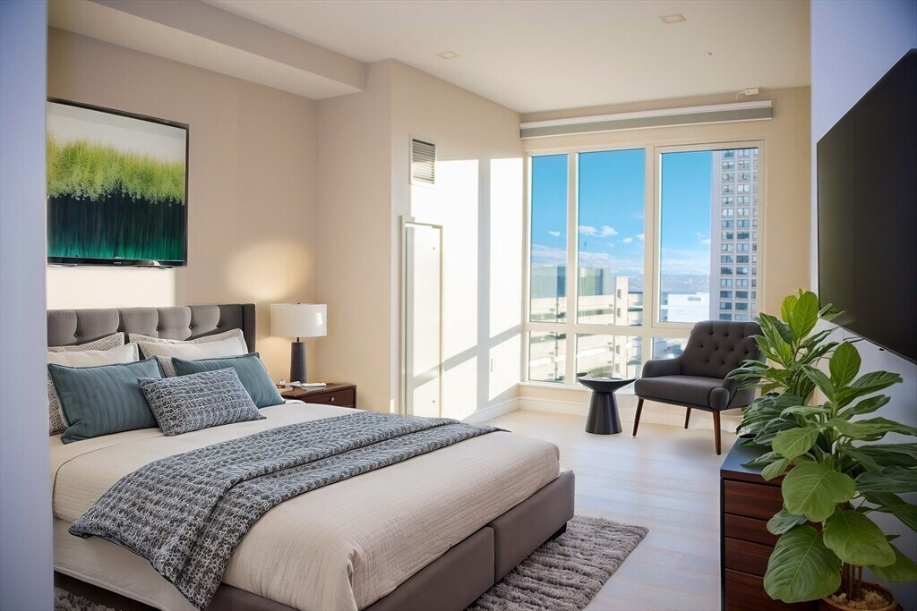 Discover luxury living at The Boulevard,a stunning high-rise boutique residence located along the Rose Kennedy Greenway. Enjoy harbor views,and an unbeatable location surrounded by premier restaurants,shopping,and scenic parks.This spacious one-bedroom plus den features an open-concept design,perfect for modern living. The chef-inspired kitchen is equipped with top-of-the-line Wolf and Sub Zero appliances,complemented by a large island ideal for entertaining. The adjacent living area boasts a sleek gas fireplace and a dining space,leading to a private balcony where you can enjoy city views. Floor-to-ceiling windows fill the home with natural light,and at night,the city lights create a beautiful backdrop. The primary bedroom with an en-suite bathroom offers a peaceful retreat. The den,while an interior room,is versatile enough to serve as an office or guest room.Enjoy a fitness room,club room,concierge,parking for one sedan vehicle.Truly a special place to make your home! MLS# 73349170