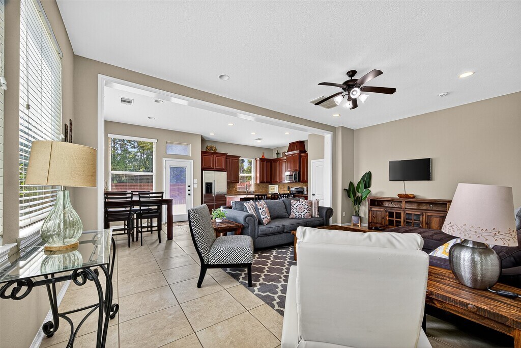 SHORT TERM! Fully furnished 3-bedroom,2.5-bath townhome in Sterling Ridge! Backing to a peaceful greenbelt with no rear neighbors,this home offers both privacy and convenience. The open-concept island kitchen features granite countertops,stainless steel appliances,and a breakfast bar that flows into the den and breakfast area—ideal for entertaining or casual meals. High ceilings and abundant windows fill the home with natural light. Upstairs you’ll find all bedrooms plus a spacious game room. The primary suite includes a walk-in closet and private bath. Enjoy a private fenced yard,2-car garage,and the convenience of washer,dryer,and refrigerator—all included. Home comes fully furnished,offering a true turnkey living experience. Zoned to Conroe ISD and close to shopping,dining,and parks,this home combines comfort,style,and The Woodlands lifestyle. MLS# 56013058