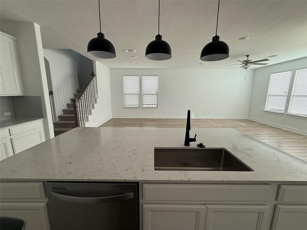 It has an open concept floor plan. Spacious kitchen offers white modern cabinets, granite countertops, and stainless steel appliances and opens to family room. One bedroom for guest or study downstair with a full bathroon, other 3 bedrroms including maste bedrppm upstira. Master bath has a walk in shower & a tub, double vanity and walk in closet. Beautiful flooring throughout. Huge covered patio in the backyard is great for entertaining ... Just minutes from local restaurants, shopping, HEB.