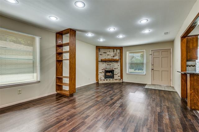 This newly renovated, clean, and move-in-ready half duplex features a very flexible three-bedroom floor plan wth two full baths and a guest powder room. The downstairs primary bedroom features an attached bath, and you'll make good use of the two generous upstairs bedrooms, each with a walk-in closet and a shared full bath. Large kitchen with granite tops, breakfast bar, water line to new fridge, and a new stove. Updated luxury vinyl plank and wood-look tile in the social areas, kitchen, and baths, lovely carpeting in all bedrooms, and newly installed Low-E windows and LED lighting for energy-efficient utility bills. All three baths have been renovated to the studs, featuring new cabinetry, stone countertops, sinks, fixtures, mirrors, tile, and more. The full-sized laundry area with washer and dryer included is combined with additional storage opportunities in the converted garage, which still features its full-sized garage door for easy access at the rear of the unit. Great location with easy access to the Bush Turnpike, 183, I-30, Beltline, and the Heritage Downtown and West Irving TRE commuter train stations.
