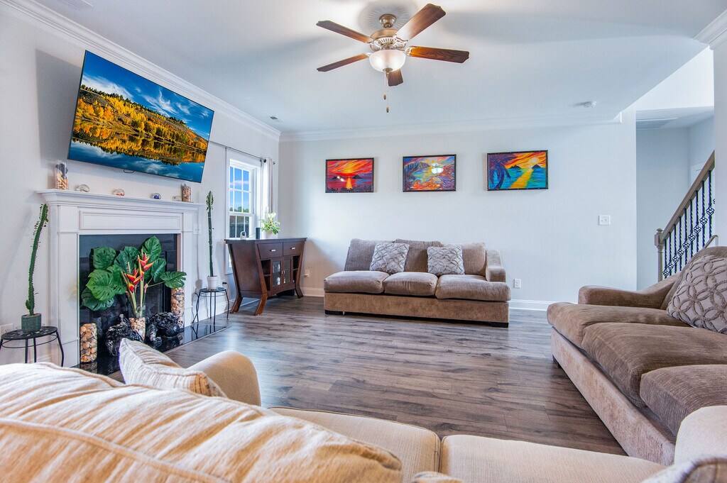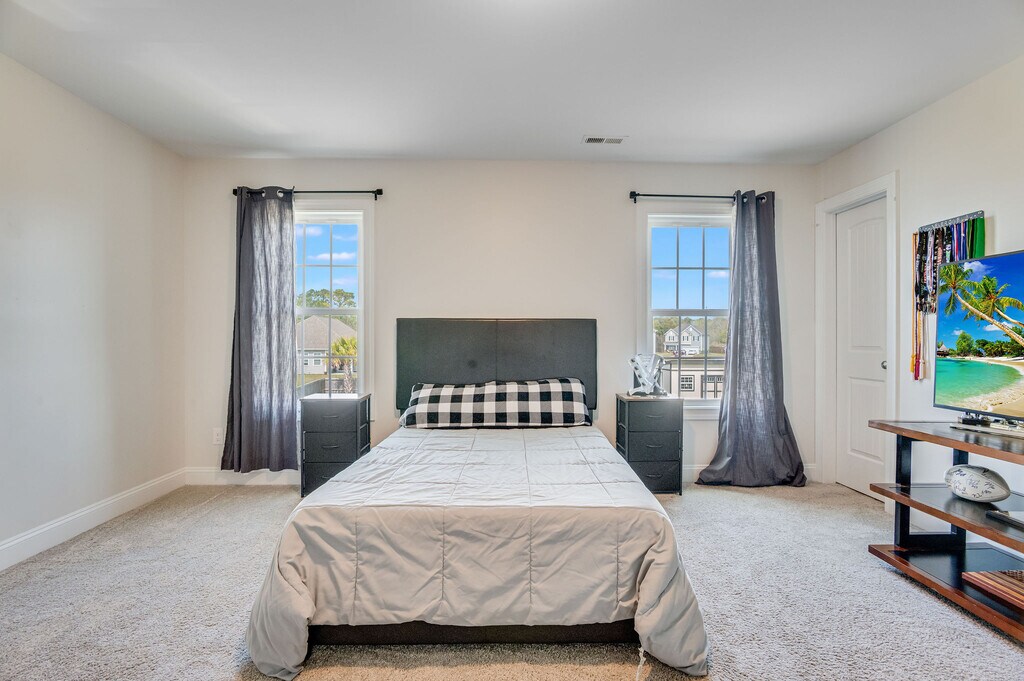 Welcome to spacious coastal living in Sneads Ferry — This expansive 5-bedroom, 3-bath single-family home at 110 Evergreen Frst Dr in the Preserve at Tidewater offers nearly 3,000 sq ft of thoughtfully designed living space. Built in 2022 and available for long-term rental, the home combines modern construction with well-appointed finishes, delivering a comfortable and low-maintenance lifestyle for families or professionals seeking room to grow. Monthly rent is $3,100 with a security deposit of $3,100.Bright, open layout with modern finishes — The main living areas feature abundant natural light and durable hardwood flooring that flows through key rooms, complemented by carpeted bedrooms for added comfort. An open-concept living and dining area creates an inviting entertaining space, while the updated kitchen includes a dishwasher and contemporary fixtures. Large windows and neutral finishes create a clean, move-in ready presentation suitable for a range of furnishing and convenience throughout — This home is equipped with central air for year-round comfort and laundry hook-ups for washer/dryer installation. Multiple walk-in closets provide generous storage for clothing and seasonal items, and additional built-in storage keeps living spaces tidy. The property is offered unfurnished, allowing you to personalize each room to your taste.Private outdoor living and practical amenities — Enjoy a fully fenced backyard that offers privacy and a safe space for children or pets to play. A separate storage shed provides room for bikes, tools, or outdoor gear, and a garage delivers secure parking and extra storage. Landscaped grounds and simple exterior maintenance make this property an easy, low-maintenance option for busy households.Primary suite and flexible bedroom arrangements — With five bedrooms and three full bathrooms, the floorplan supports multiple configurations: a dedicated home office, guest suite, or playroom in addition to the primary bedroom. Well-proportioned secondary bedrooms and multiple bathrooms reduce morning congestion and enhance household lifestyle in Preserve at Tidewater — Located within the Preserve at Tidewater, the neighborhood is ideal for outdoor enthusiasts. Enjoy scenic nature trails, bike paths, fishing docks, and opportunities for kayaking, paddleboarding, and canoeing nearby. The community atmosphere emphasizes peaceful coastal living while remaining convenient to local services and area beaches.Ready for your next chapter — This renovated, move-in ready home blends generous indoor space with functional outdoor amenities, perfect for families seeking comfortable coastal living in Sneads Ferry. Contact the listing agent to learn about lease terms and to schedule a showing at 110 Evergreen Frst Dr. Prospective tenants will appreciate the home’s modern features, practical storage, and exceptional community access.