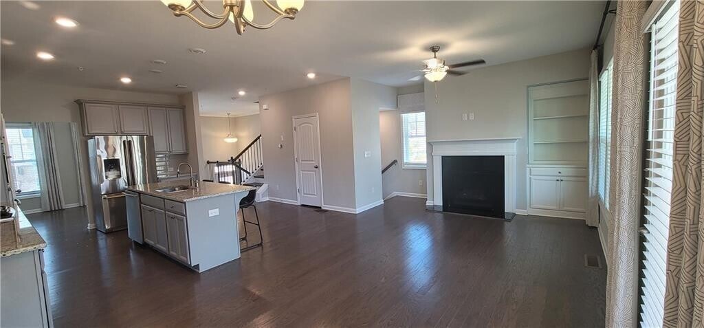 This desirable end unit townhouse,once the builder's model,boasts a spacious 4 bed/3 bath floorplan. The open-concept main level seamlessly connects the kitchen,living,and dining areas. The kitchen features double ovens,a gas cooktop,stone countertops,and a center island ideal for both meal prep and casual dining. The living area features a cozy fireplace and bookcases,leading to a private covered deck. Located on the upper level is the master suite featuring an ensuite bath complete with double vanities,a separate shower,and a soaking tub. Two more sizable bedrooms and a full bath complete the upper level. The finished lower level offers another bedroom and full bath. Additional highlights include all draperies,bidets on all toilets,a Tesla charger in the garage,and two Ring cameras (front door and garage). Conveniently located just steps from the pool and visitor parking,and a mere ten-minute stroll to vibrant downtown Woodstock! Plus,enjoy easy access to I-575 and the Outlet Shoppes at Atlanta,just a quick two-minute drive away. MLS ID 7676497