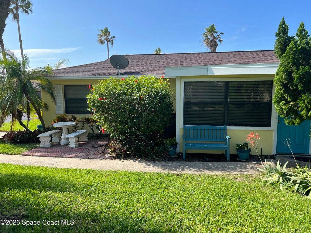 Tucked away on a quiet cul-de-sac in a hidden gem community of Melbourne Beach,this charming home is just a short walk to the ocean with deeded beach access right across the street. You enter through a versatile flex room or sunroom,separated by a sliding glass door that opens into the main living space. The open kitchen,living,and dining area offers a functional layout,along with a stackable washer and dryer for convenience. The home features two generously sized bedrooms and one full bathroom. The property includes a storage shed and an additional separate outdoor storage space. This home is a breezy place to relax,and at times you can even hear the ocean. Conveniently located minutes from Sebastian Inlet,with easy access to Kennedy Space Center,Orlando and Port Canaveral MLS # 1072216