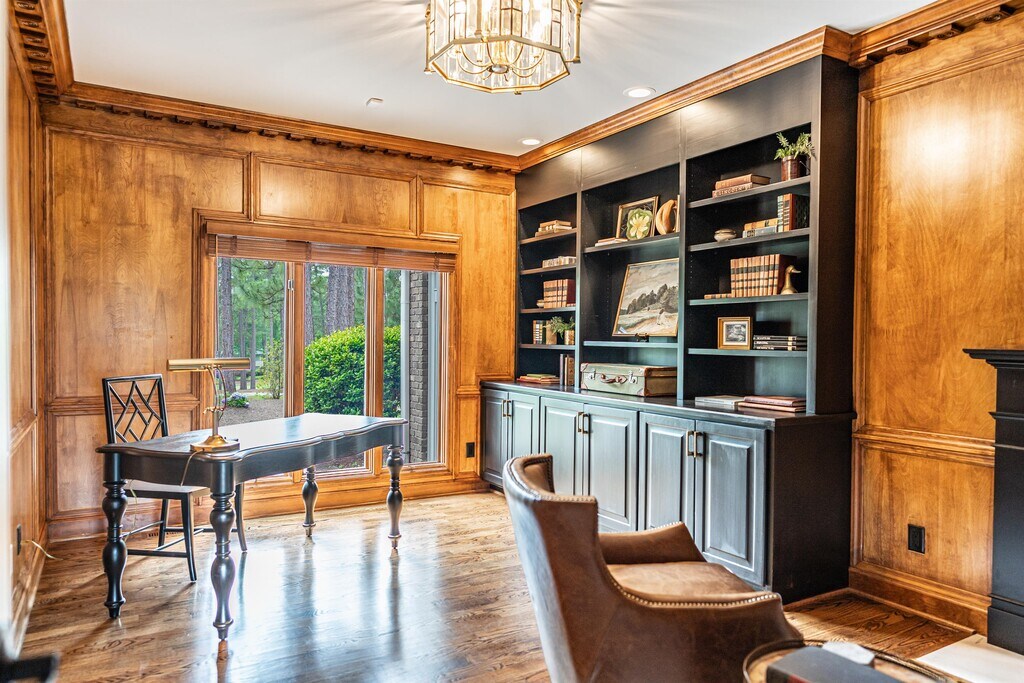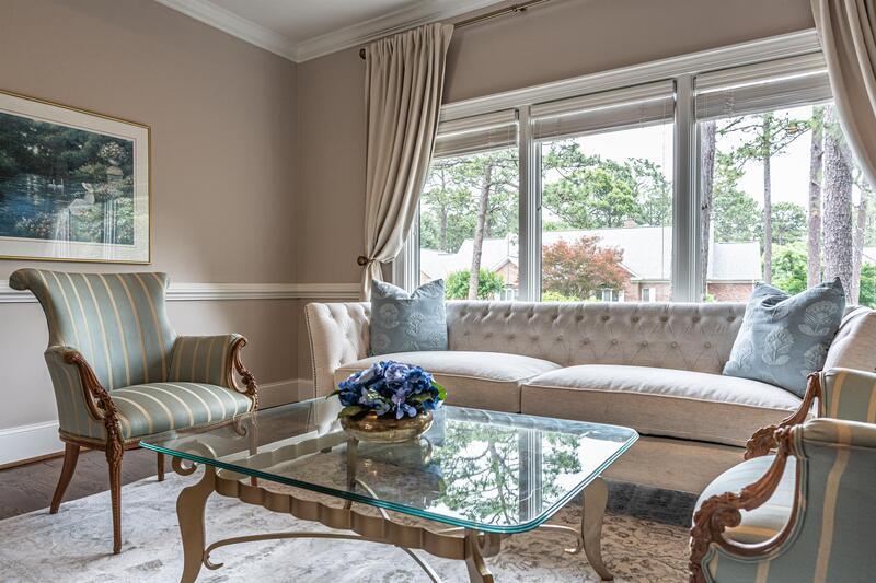 This gorgeous home in The Fairwoods on 7 boasts luxury and privacy in an esteemed golf course community. High design and attention to detail is what you'll enjoy during your time spent in this home. From your daily breakfast to your dinner parties, delight in the gourmet kitchen to include a professional class gas range and full size Wolf wine refrigerator. The main floor master suite is a home unto itself. The bedroom offers a spacious sitting area, while the bath — with its freestanding tub and 3-head rainforest shower with river rock floor - creates a designer spa experience. Relish in time spent on the terrace among the pines and overlooking Pinehurst Number 7. 30 day stay at minimum.