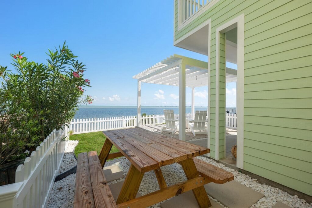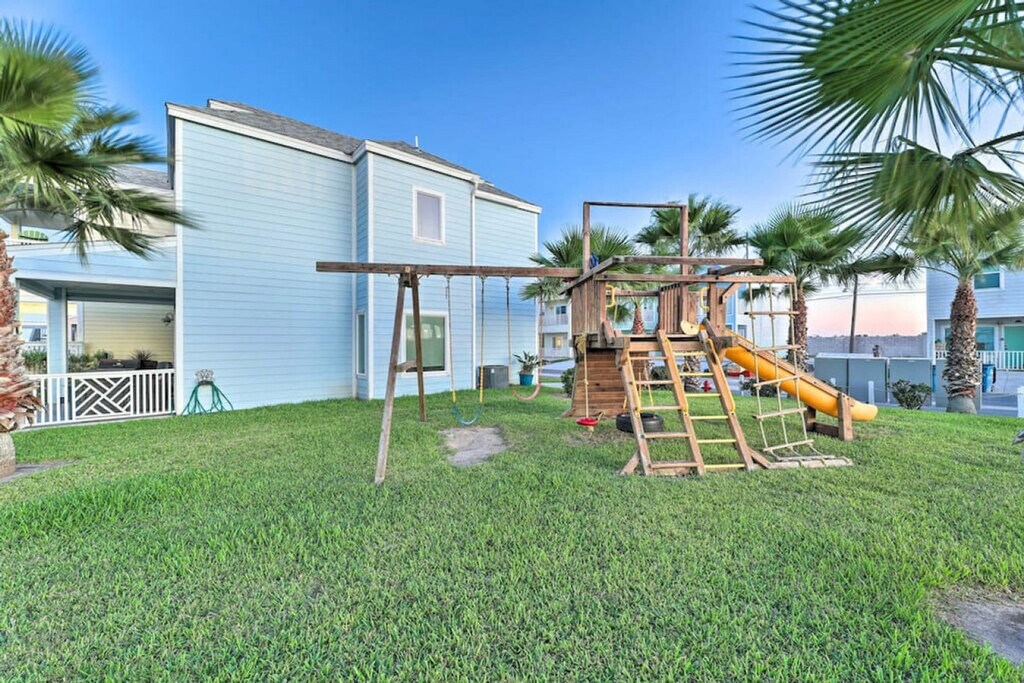 Escape to this 1050 sq. ft. waterfront house in an exclusive gated community, just a short distance from Port Isabel. Feel at home in this coastal paradise. This abode boasts a sprawling deck with Gulf of Mexico views, a hot tub, a pool, a playground, and a BBQ grill. Enjoy using the smart HDTV and lightning-fast 300 Mbps Wi-Fi. This is a pet-friendly environment. Located in a coastal paradise, this house is a short distance from the charm of Port Isabel. Maximum occupancy restrictions are strictly enforced by fire code, and loud parties are not allowed out of respect to the neighbors. There is a security guard on site, and loud parties will be immediate grounds to terminate your stay. Guests must be at least 25 to book. [SI]