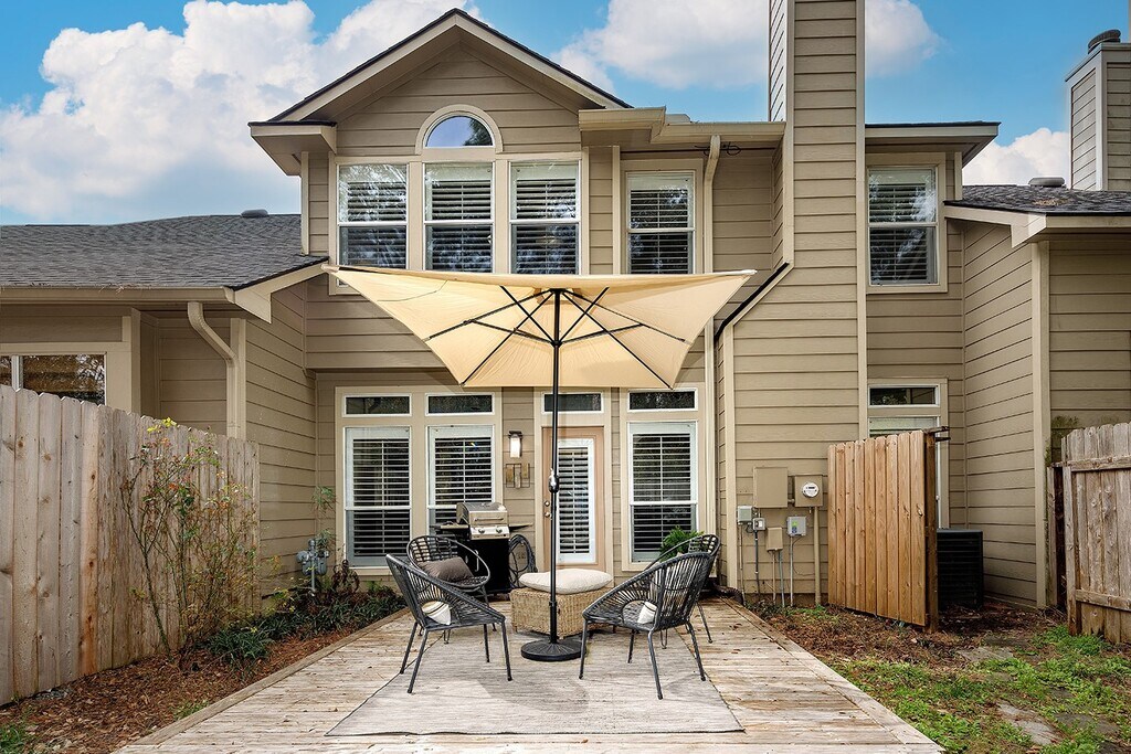 Deanna BowmanAll utilities included for short and long-term accommodations! Tastefully furnished and accessorized townhouse in The Woodlands offers all amenities needed for temporary or long-term living solutions. Attached garage parking spacious enough for most vehicles provides convenient entry directly into the home and has some extra room for your storate needs. Private, fenced in backyard with wooded views and no rear neighbors offers space for outdoor enjoyment. Convenient proximity to commuter routes, schools and The Woodlands' signature amenities makes 110 N Valley Oaks Circle an ideal home for your short and long-term lifestyle! Terms of 3 months or longer are considered. Available immediately.