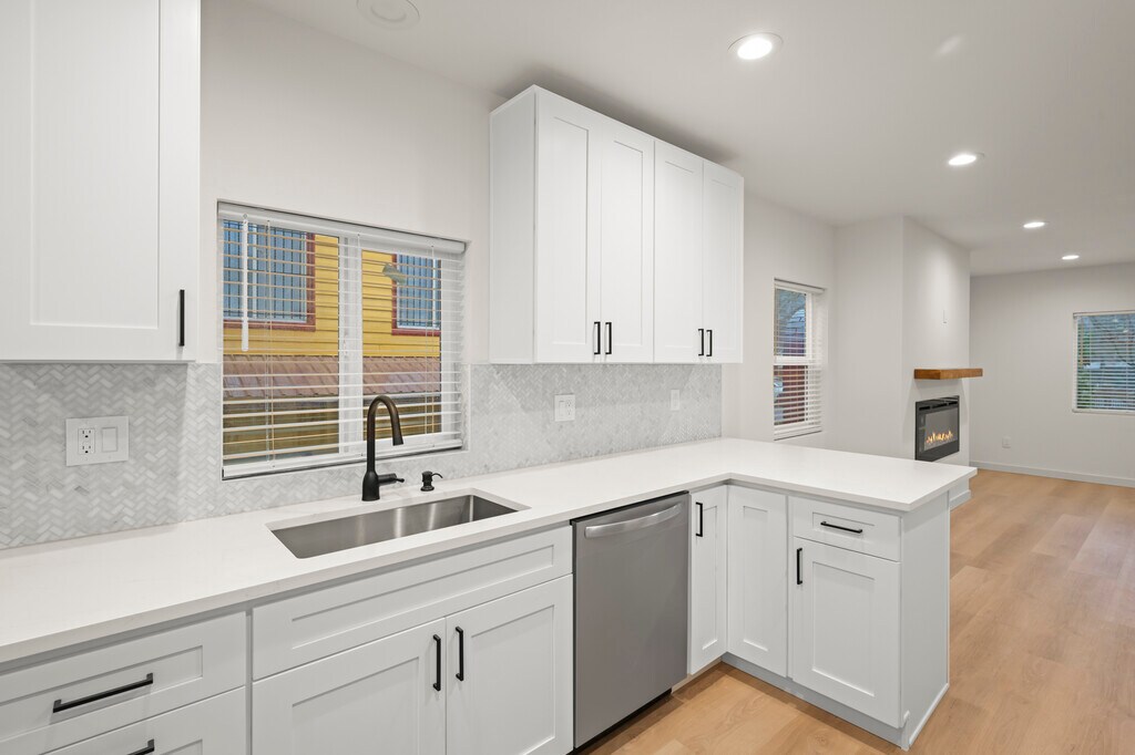 Be the first to live in this beautifully renovated, never-lived-in home located on a quiet residential street in Greenwood. Thoughtfully redesigned with a clean, modern aesthetic and high-quality finishes throughout, this residence offers a bright, open layout ideal for both everyday living and entertaining. The kitchen serves as the heart of the home, featuring white shaker cabinetry, quartz countertops, brand-new stainless steel appliances, and a spacious peninsula perfect for seating or meal prep. Recessed lighting, sleek black hardware, and contemporary finishes create a timeless, elevated look. The open living area flows seamlessly from the kitchen and is filled with natural light, creating a warm and inviting atmosphere. The home includes three well-proportioned bedrooms and two fully updated bathrooms. The primary suite offers a private ensuite bathroom and a walk-in closet for added comfort. Luxury vinyl plank flooring runs throughout the home, complemented by modern doors and neutral tones that provide a clean, versatile canvas ready for your personal touch. Additional features include in-unit laundry, efficient heating and cooling, and a modern electric fireplace—perfect for relaxing or hosting guests. Every detail has been carefully updated, making this home truly move-in ready. Enjoy a prime Greenwood location that is walkable to some of the best local cafes, restaurants, and parks Seattle has to offer, with convenient access to major commuting routes for easy travel throughout the city. This home occupies the upper level of a two-level residence, with a separate unit below that has its own private entrance. Soundproofing measures were incorporated during the remodel to enhance privacy and everyday comfort. Lease Details: • Pets considered on a case-by-case basis (pet deposit and/or pet rent may apply) • Renters insurance required • $75/month per person covers water, sewer, and garbage • Electricity to be placed in tenant’s name- internet paid separately • Two parking spots included • One-year lease- no smoking inside the home Move-In Costs: First month’s rent, last month’s rent, and security deposit due at lease signing To schedule a showing or request an application link, please contact us. We look forward to helping you make this your new home.