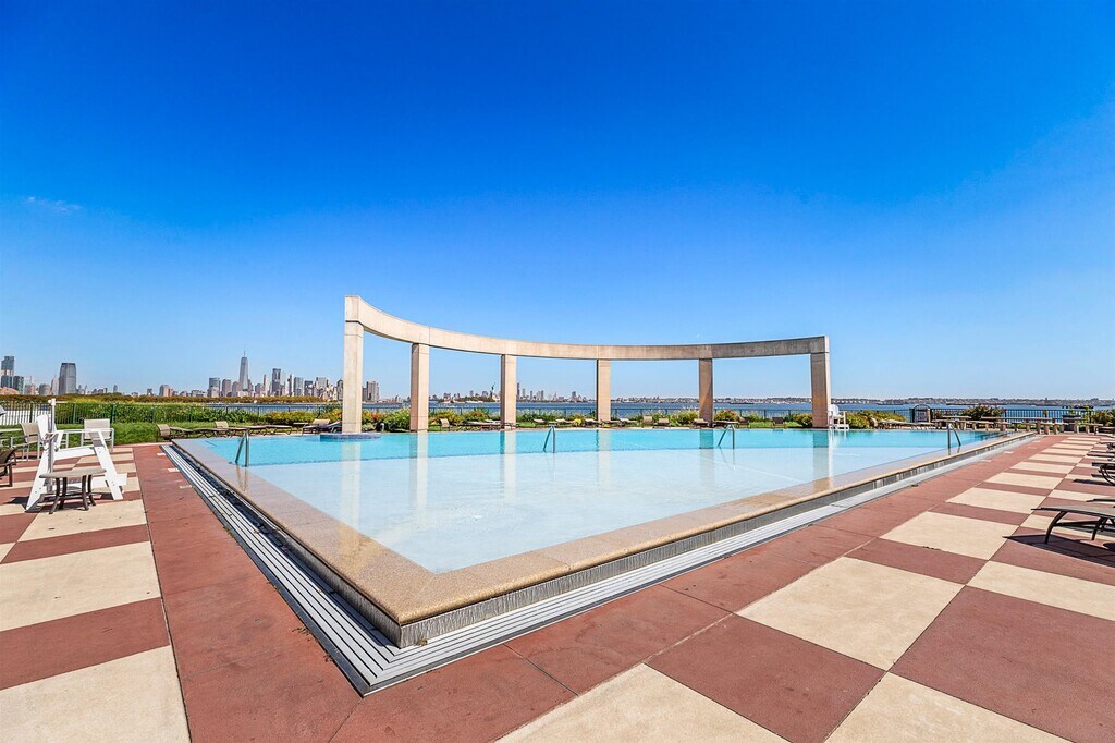Welcome to Port Liberté! This massive 1-Bedroom, 1-Bathroom (with Private Terrace!) residence offers a thoughtfully designed, functional living space in one of Jersey City’s most-coveted waterfront communities — just a five-minute walk to the Pier 11 Wall Street Ferry. 1-Car Garage Parking is included. Meticulously updated over the years, the home is filled with personal style, color and creativity — making it truly one of a kind. The open-concept Kitchen and Living Room are bathed in natural light and showcase awe-inspiring views of the NYC skyline. French Doors lead into the oversized Bedroom, while a private terrace provides the perfect setting to enjoy your morning coffee or evening relaxation with extraordinary views of the Hudson River and Manhattan’s Financial District; also included is a full-size washer/dryer and a walk-in cedar closet. Community amenities include 2 Outdoor Pools, Tennis/Basketball Courts, a 4,600-square-foot Fitness Center (with Saunas, Locker Rooms, Massage Room) as well as a Playground, Clubhouse, and Dog Park — all within a 24-Hour secured, gated neighborhood. Additional on-site conveniences include a NY Waterway Ferry terminal with service to Lower Manhattan, a shuttle to the Grove Street PATH Station (servicing both 33rd Street and World Trade Center) and two outstanding dining options: Felina Steak restaurant and the Stork Club Rooftop. With its unique blend of character, modern updates and resort-style living, this Port Liberté home offers both comfort and style in an unbeatable location.