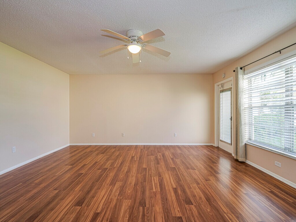 First-floor unit. 2-bedroom, 2-bath condo. Backyard view is light woods. Nicely kept. Flooring laminate. Lanai faces East. Partially furnished with patio furniture. All the Furniture in the photos are staged to showcase room sizes. The only furniture will be patio. Rare find with washer and dryer. Ready to be occupied annually. Tenant needs association approval.
