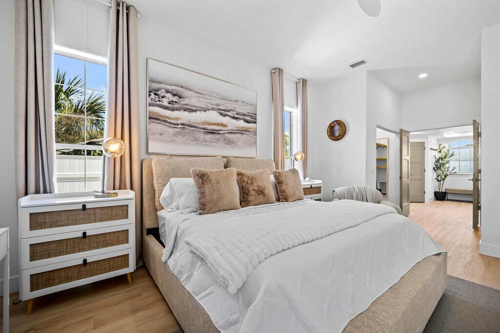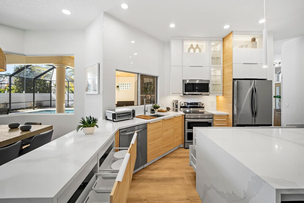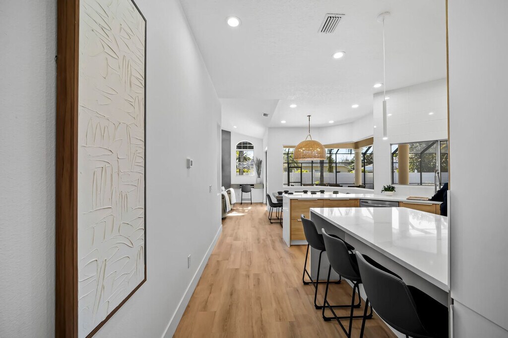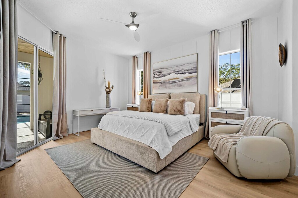 Step inside this stunning vacation retreat, a beautifully renovated 5-bedroom, 3-bathroom home. Luxurious finishes and thoughtful details create a welcoming atmosphere. Enjoy a large heated in-ground pool and separate heated spa, a cozy family room with a 75" Smart TV and electric fireplace, and a game room with pool, foosball, and tennis tables. The outdoor area features seating for 10, a fire pit, and a landscaped yard. Conveniently located near biking trails and stunning beaches, this home offers the perfect blend of comfort and adventure. Step into this beautifully renovated 5-bedroom, 3-bathroom retreat designed for ultimate comfort and relaxation. The home features a large, heated in-ground pool, a separate hot tub/spa, and an outdoor shower, making it perfect for soaking up the sun or unwinding after a day of adventure. Inside, the luxurious finishes and thoughtful details create a welcoming atmosphere. Three bedrooms feature plush king-size beds, while the remaining two offer cozy queen beds. All are adorned with high-end linens and towels for your comfort. The master suite is a haven of tranquility, complete with a spa-like bathroom featuring his-and-hers vanities and direct access to the outdoor spa for a truly indulgent experience. Pool and spa heating is available for $287 per week or $200 weekly for multiple week stays. Pets are welcome with a fee of $100 per pet per stay. If you plan to bring a trailer or RV, secure off-site parking is available approximately 7-10 miles from the property for $25 per day per unit. Just minutes from stunning beaches, this home is close to the historic charm of St. Augustine and a short drive to Daytona Beach and Orlando attractions. Located in the heart of Pine Lakes, the neighborhood is known for its beautiful tree-lined streets, serene lakes, and natural preserves. Pine Lakes is conveniently located just minutes from Palm Coast’s main thoroughfares, making it easy to access shopping, dining, and entertainment options. It's also a short drive to Flagler Beach, offering miles of pristine coastline. Quiet hours are between 22:00 and 8:00. This property is located in a residential neighborhood, so please be respectful to the neighbors and pick up after your pets. No trailers are allowed in the city of Palm Coast for more than 3 days. If you need to bring a trailer, please contact the host to make arrangements. A rental agreement must be signed to confirm your stay and receive check-in instructions. The home offers a remote work-friendly environment with Wi-Fi and multiple Smart TVs for entertainment. [SI]