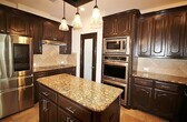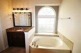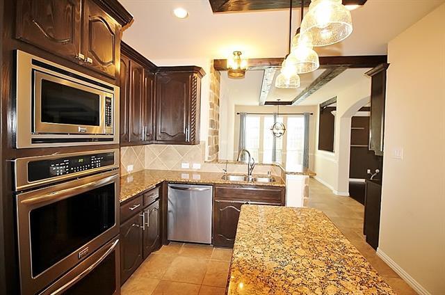 Lovely 2-story, 4-3.5-2 home in a prime location, loaded with upgrades throughout! Step into the spacious family room featuring a charming stone fireplace, perfect for cozy evenings. The open island kitchen is a chef's dream, showcasing gorgeous granite countertops, built-in stainless steel appliances, and a custom wine rack. Enjoy the luxury of two primary suites, one on each floor. The downstairs primary suite is an ultimate retreat with separate vanities, a jetted tub, and a separate shower. The dramatic iron stairway leads to the upstairs living area and additional bedrooms. Step outside to your fantastic outdoor oasis, complete with a built-in Austin stone bar, outdoor kitchen with grill, custom sitting area, and fireplace—ideal for entertaining! Decorative art niches, iron gates, and gorgeous fixtures throughout make this home truly special. Don’t miss out on this stunning home! Owner must approve all pets.